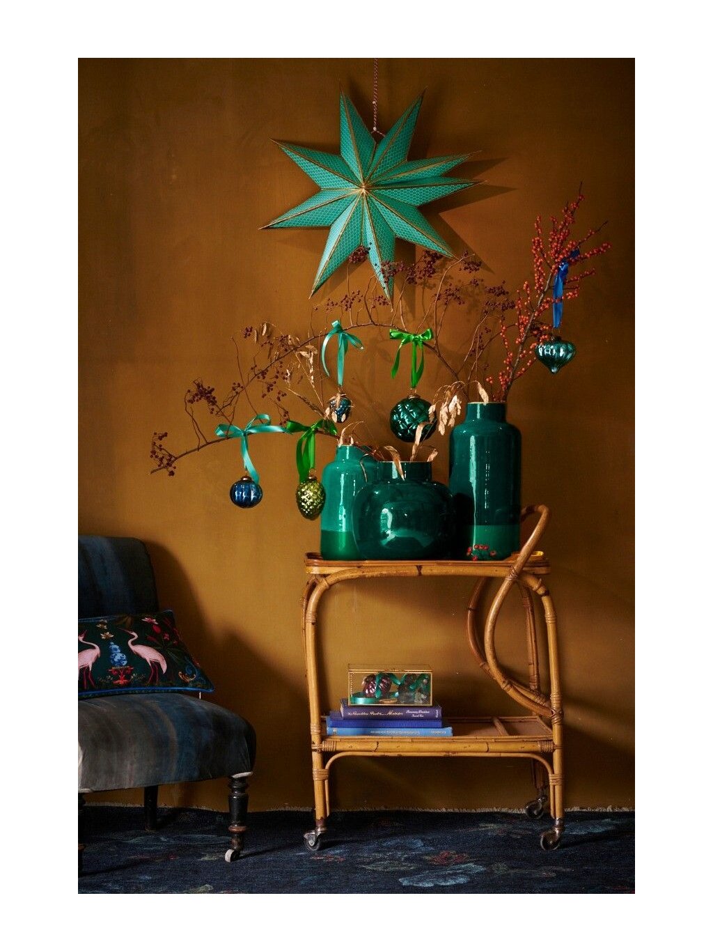 Vánoční hvězda papírová zelená 60 cm