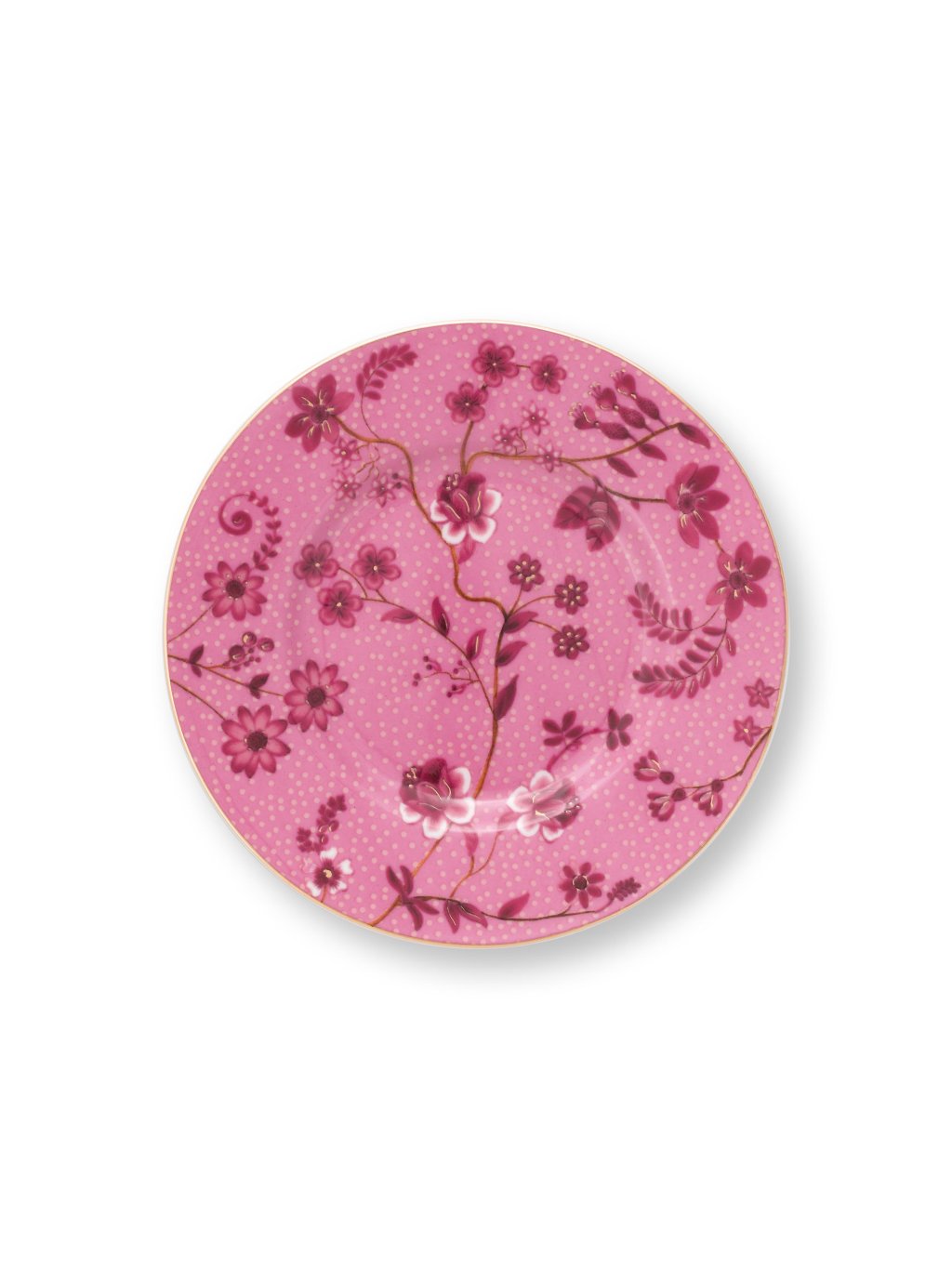 Kolekce Jolie Flowers - talíř o průměru 12 cm s krásnými florálními motivy v růžových odstínech. Vhodný na dezert ke kávě nebo jako podšálek k větším hrnkům.