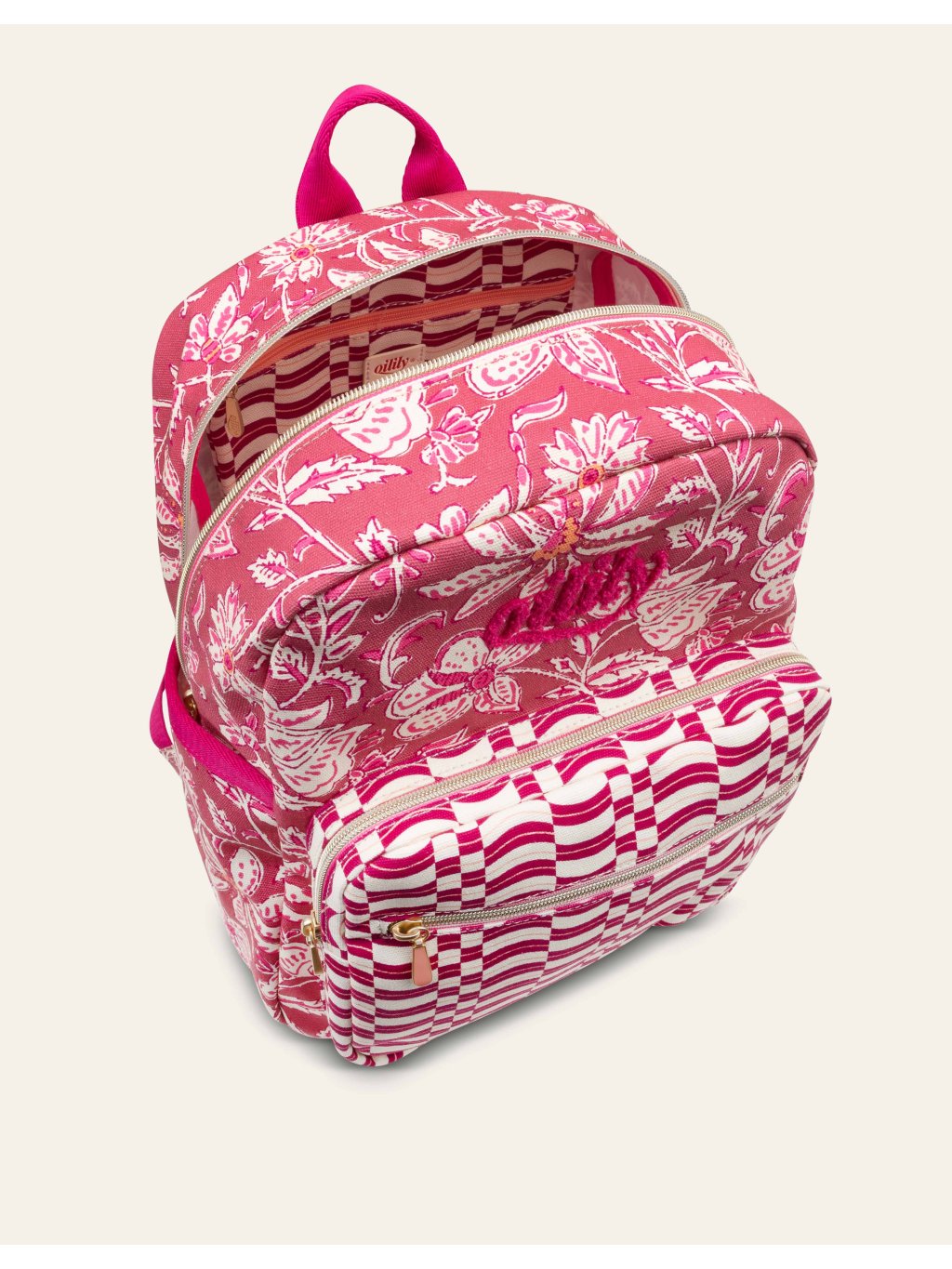 Tento batoh Oilily ze 100% bavlny je praktický a stylový doplněk pro cestování i každodenní použití. Ideální jako cestovní batoh, lehký batoh na výlety nebo záložní batoh na dovolenou.