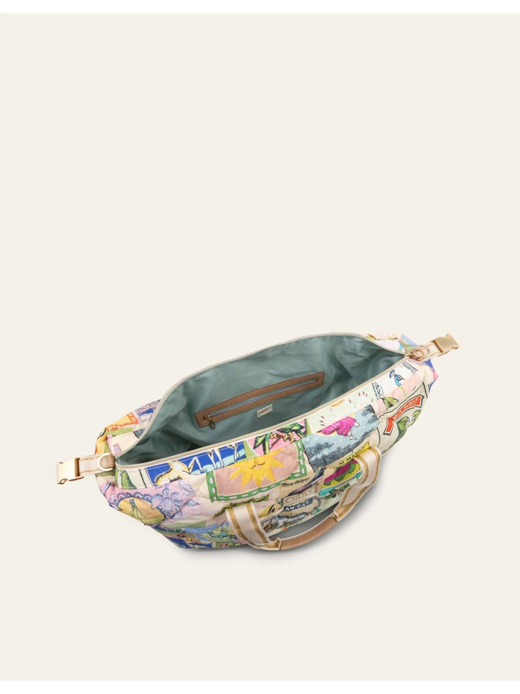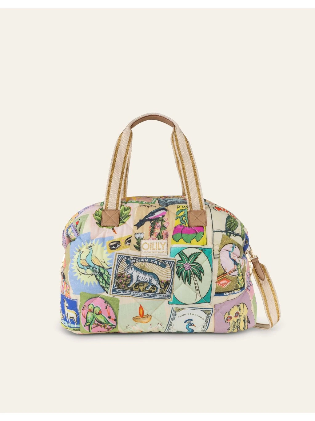 Stylová a prostorná taška Coosje Overnighter od OILILY s hravým vzorem Flaming Symbols. Odnímatelný ramenní popruh, polstrování a možnost zmenšení objemu činí tašku ideální pro víkendové pobyty nebo nákupy.