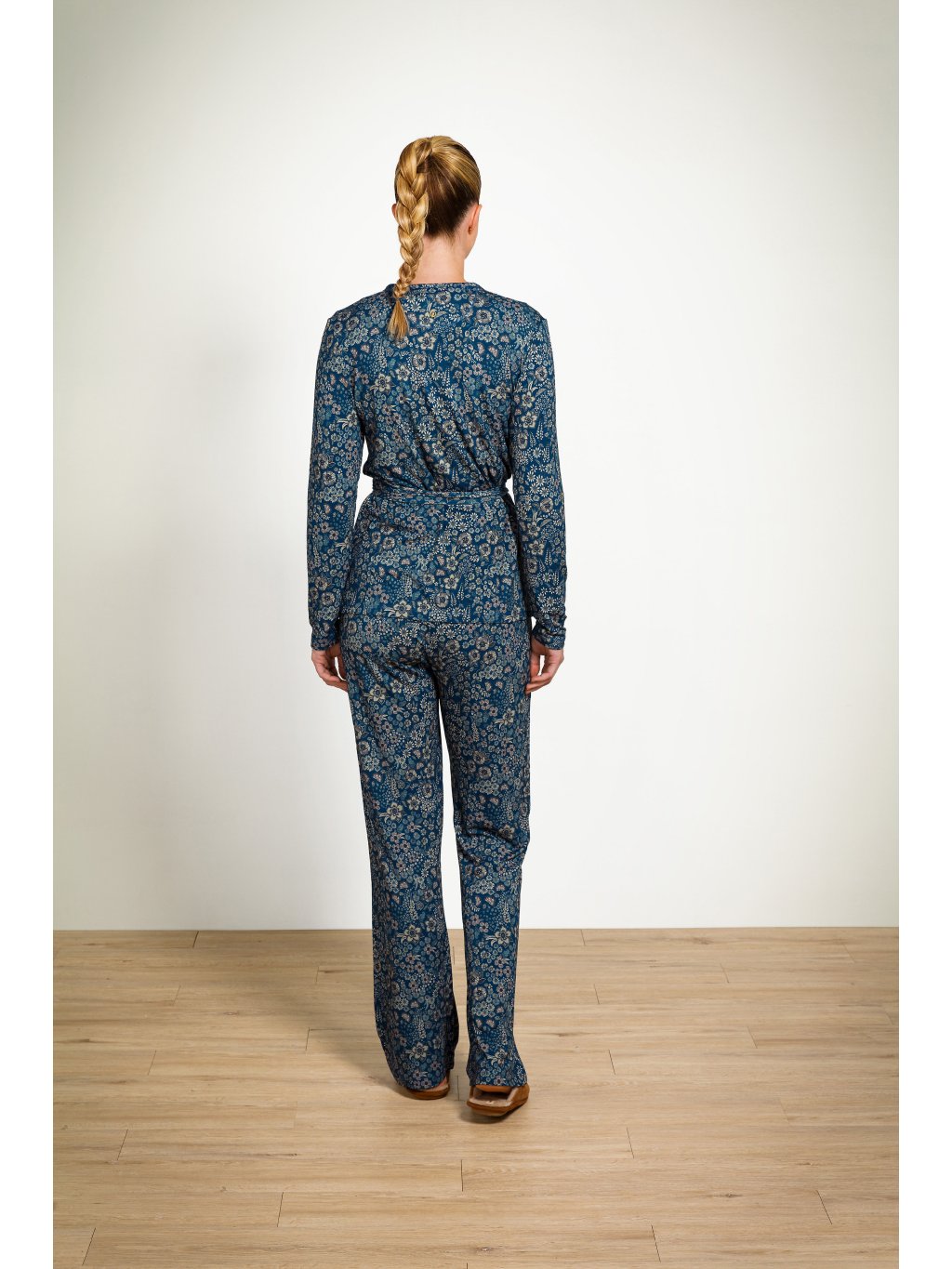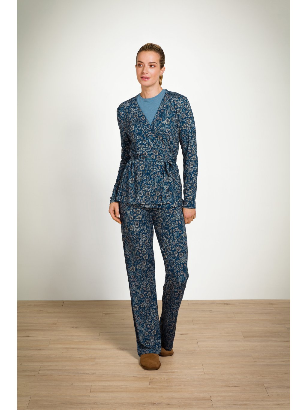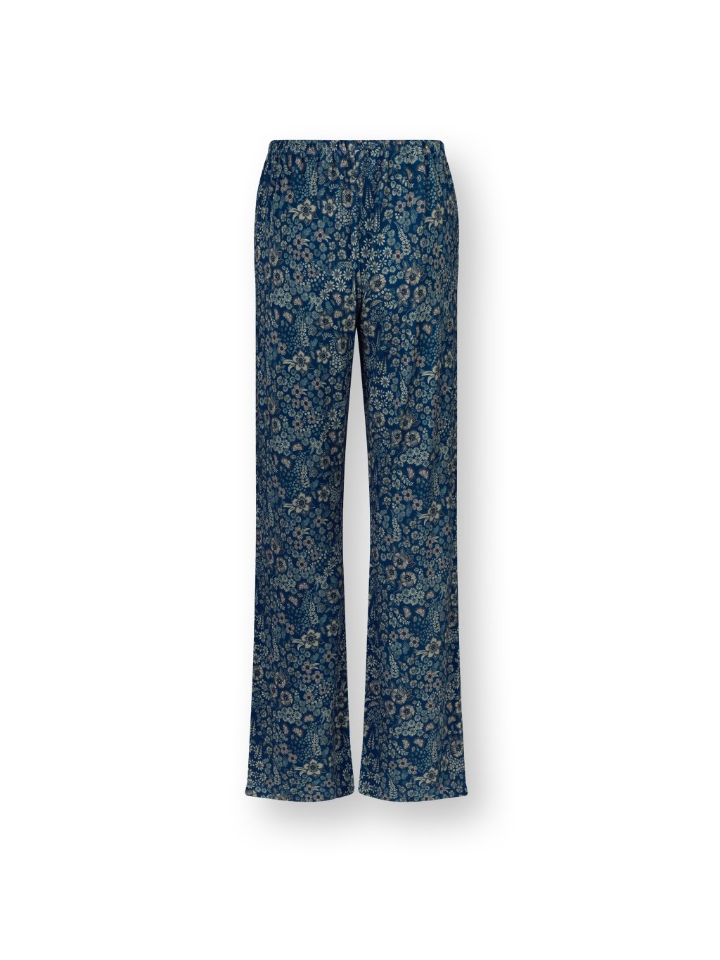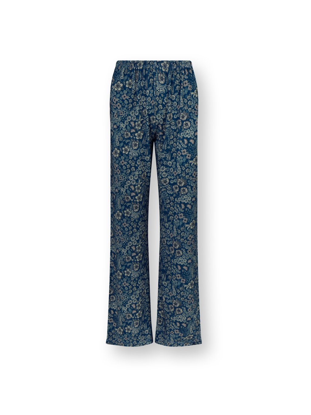 Pohodlné dlouhé kalhoty z kolekce Daisy Dreams jsou vhodné jako domácí oděv pro chvíle odpočinku. Široký pružný lem pasu, který netlačí. Tkanina je velmi příjemná (100% přírodní bavlna) a díky žebrování také jemná a elastická, krásně se přizpůsobí vašim křivkám. Elegantní tmavá modrá barva je zdobená motivy květin, nohavice jsou široké pro příjemné nošení. Rovnější střih s lehce rozšířenými nohavicemi. Bez kapes.