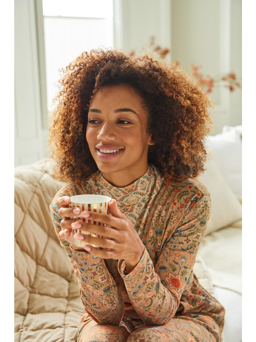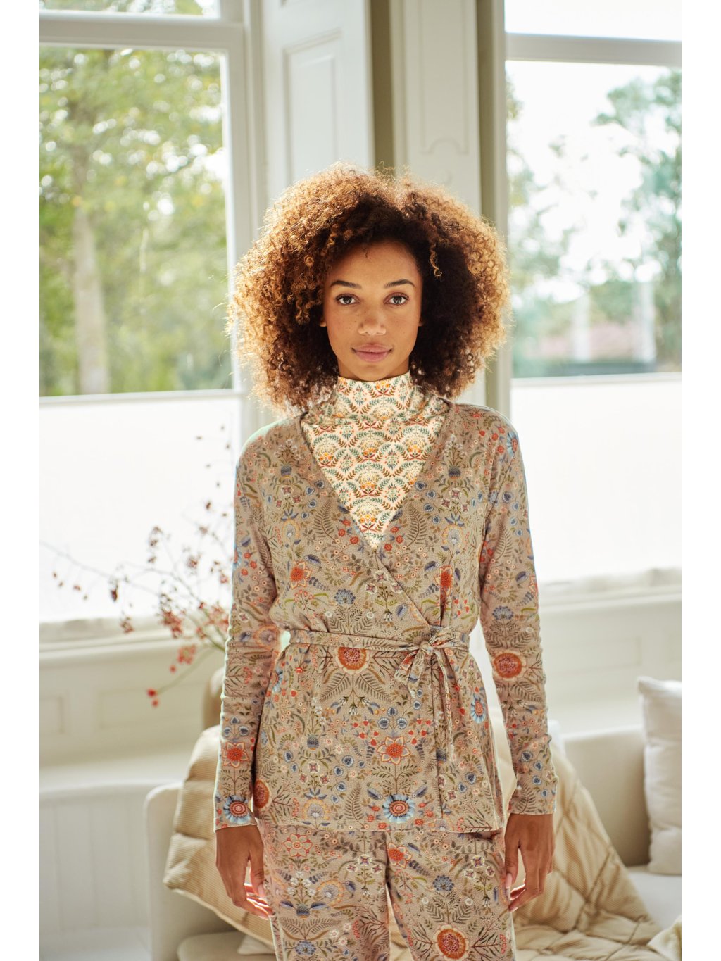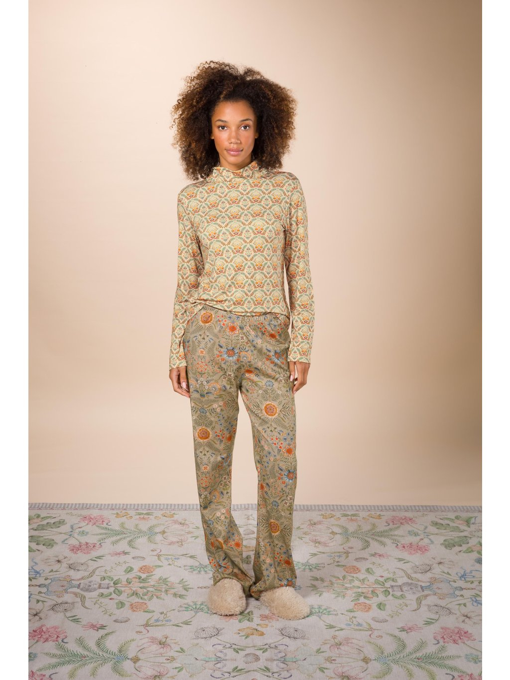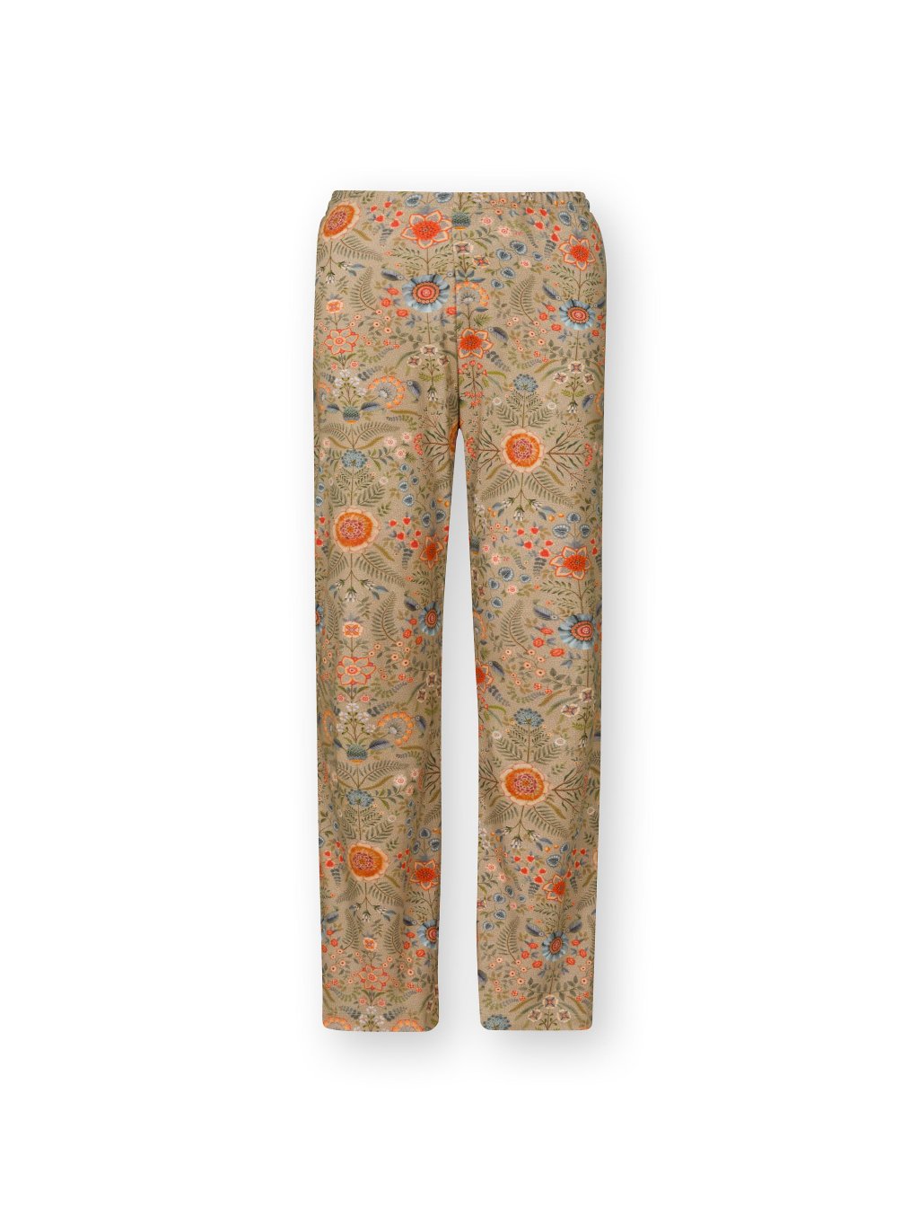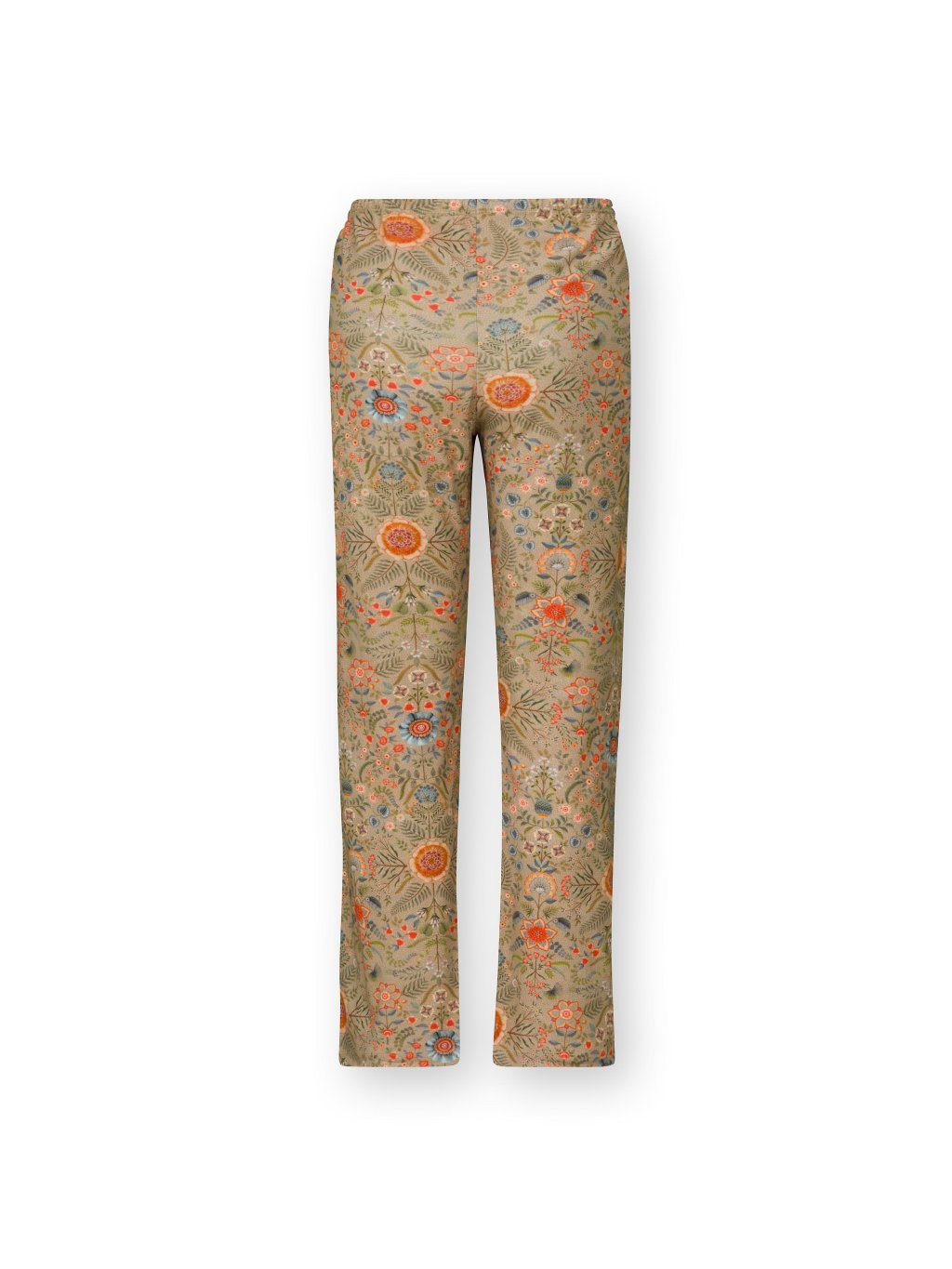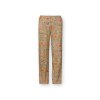 Pohodlné dlouhé kalhoty z kolekce Flore Pequeña vhodné jako domácí oděv pro chvíle odpočinku. Široký pružný lem pasu, který netlačí. Tkanina je velmi příjemná (100% přírodní bavlna) a díky způsobu tkaní se krásně se přizpůsobí vašim křivkám. Elegantní písková barva je zdobená motivy květin, nohavice jsou širší pro příjemné nošení. Rovnější střih s lehce rozšířenými nohavicemi. Bez kapes.