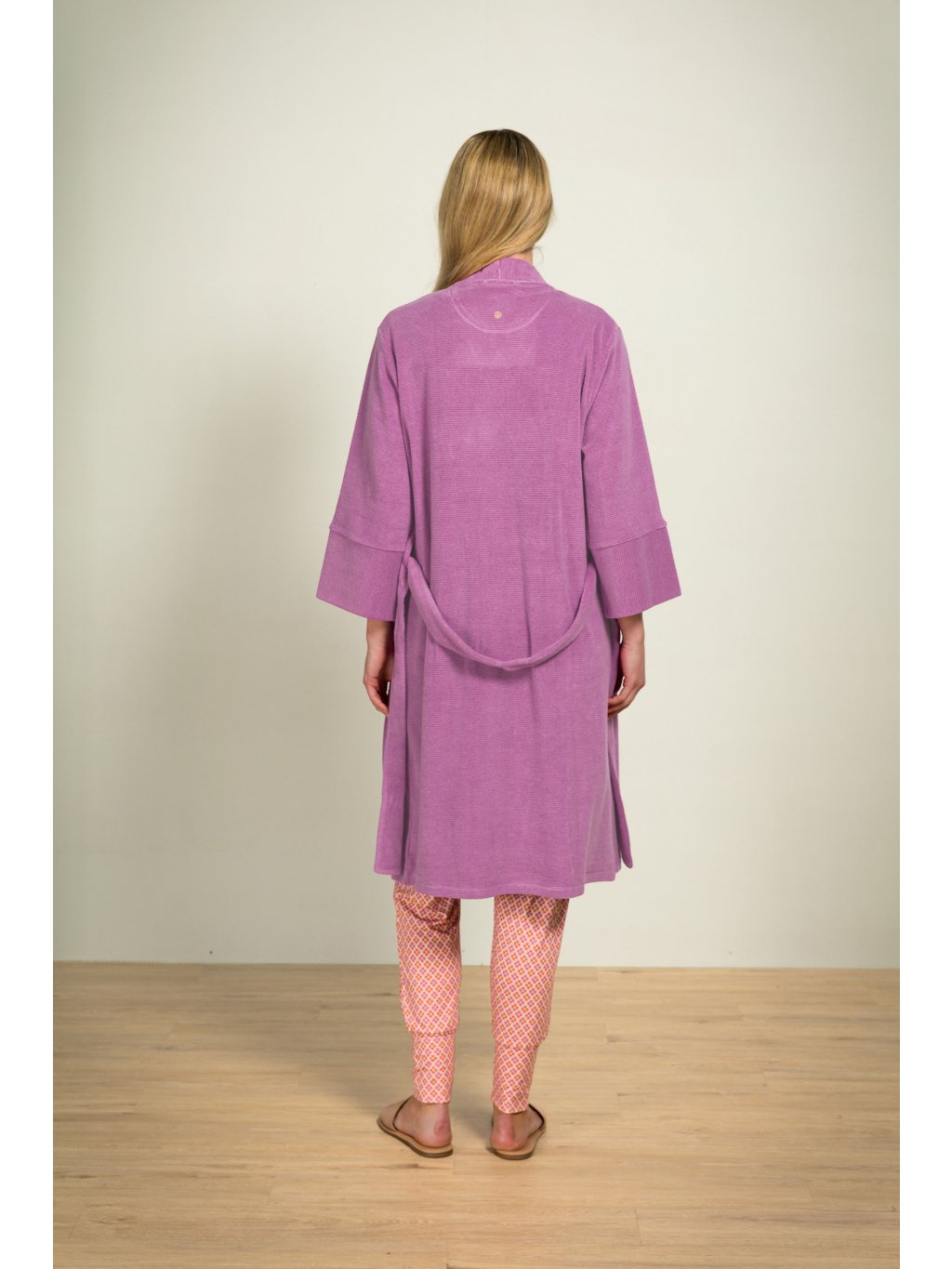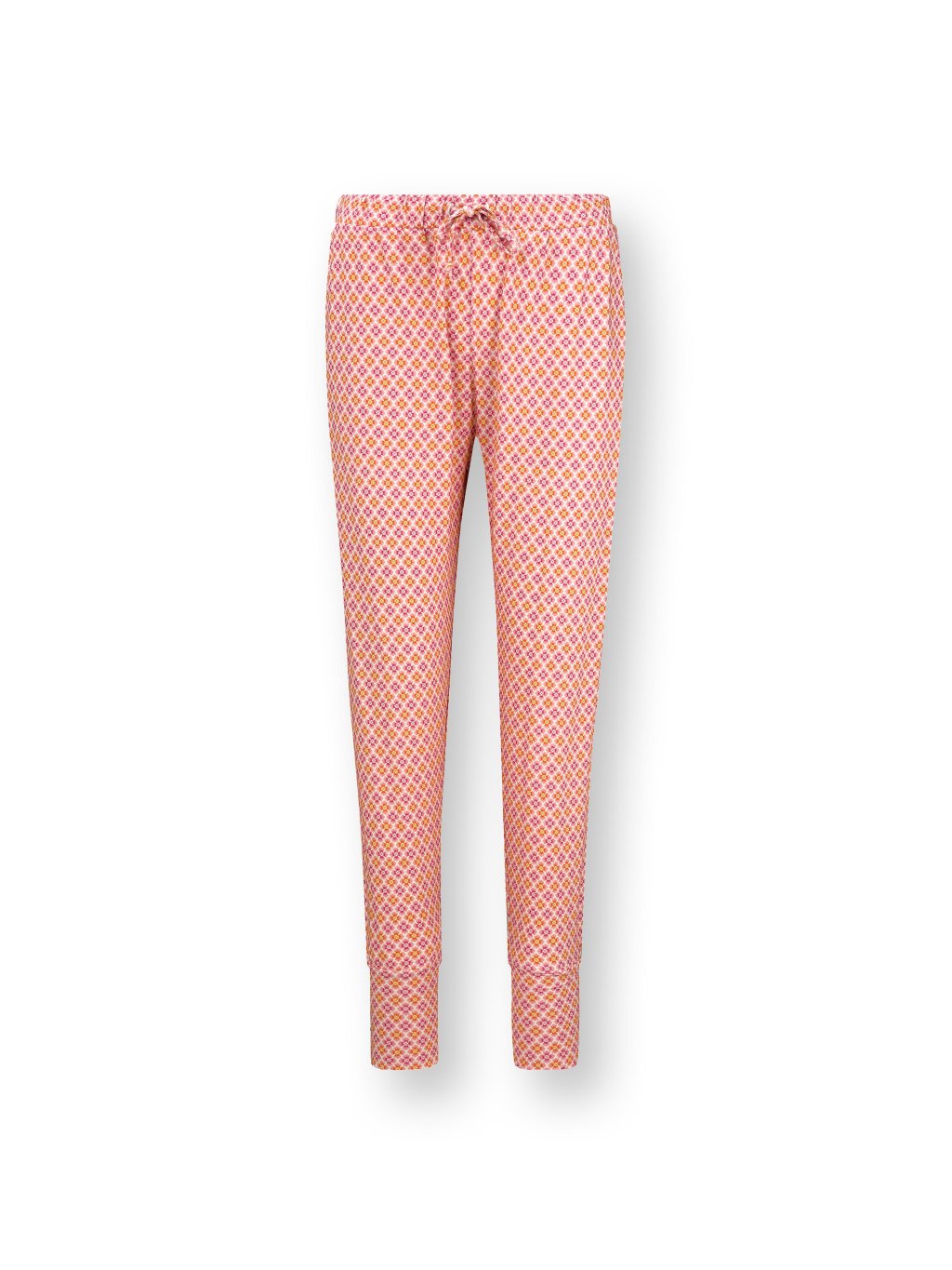 Pohodlné dlouhé kalhoty vhodné jako domácí oděv pro chvíle odpočinku nebo jako spodní díl pyžama. Široký pružný lem pasu lze stahovat ještě extra šňůrkou. Design Mojo je jemný a živý geometrický vzor tvořený drobnými kvítky ve dvou barvách. Dodává vhodný kontrast k dominantním florálním vzorům.