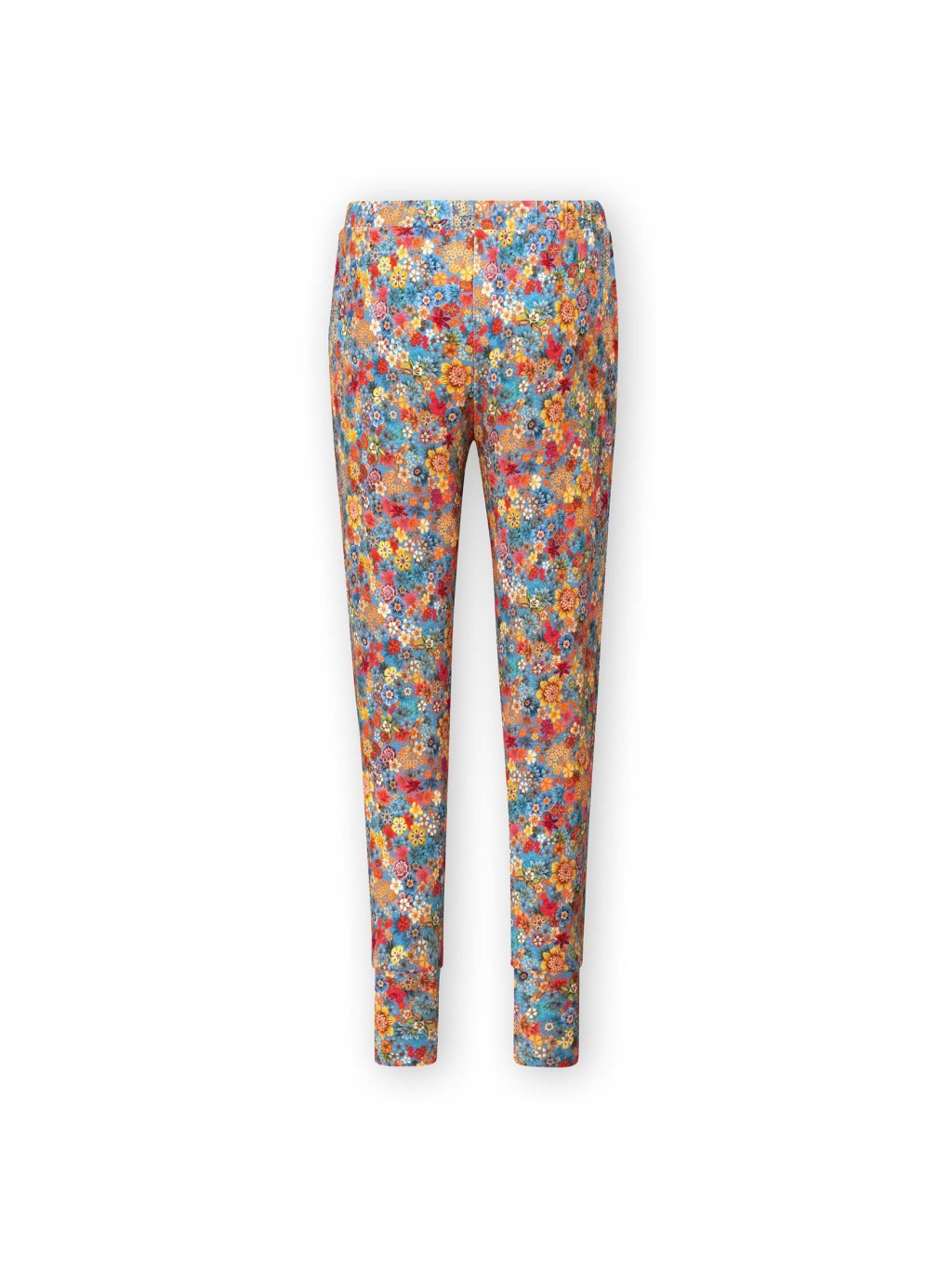 Pohodlné dlouhé kalhoty z kolekce Tutti i Fiori vhodné jako domácí oděv pro chvíle odpočinku. Široký pružný lem pasu doplněný barevně kontrastní šňůrkou na stažení v pase. Výrazná barva je bohatě dekorovaná drobnými květy. Látka je velmi jemná, splývavá, díky vysokému podílu elastanu se skvěle přizpůsobí všem vašim aktivitám.