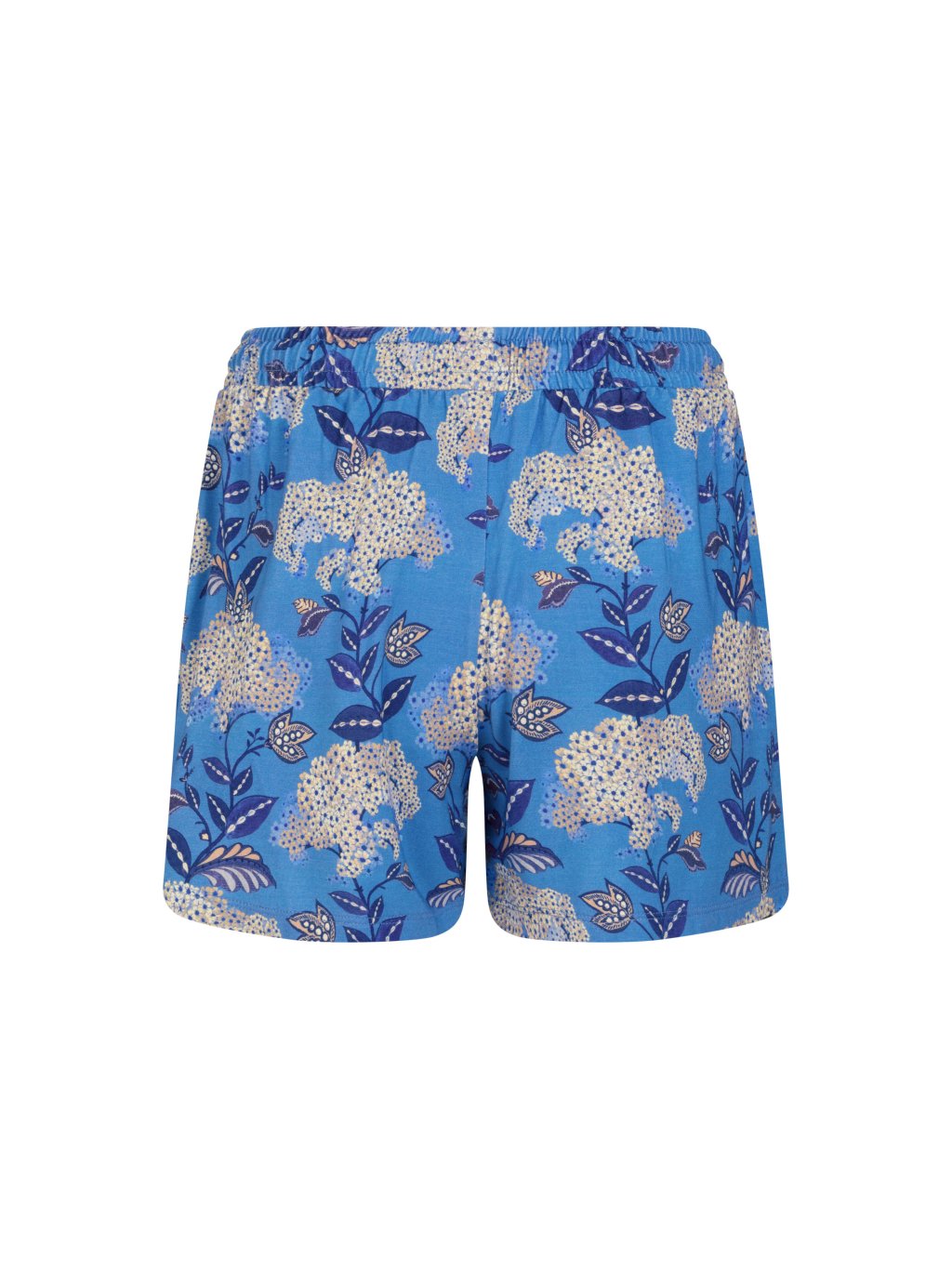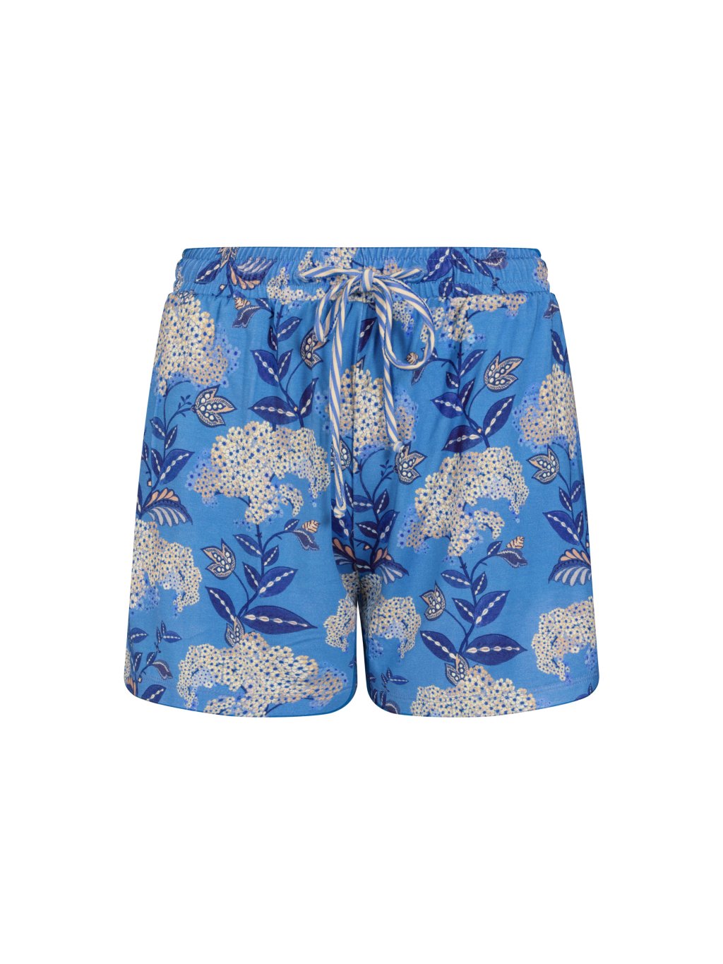 Krátké kalhoty se stahovací šňůrkou v pružném lemu. Základní barva je bohatě zdobená florálním motivem. Látka je velmi jemná, splývavá, má chladivý efekt, ideální na teplejší dny.