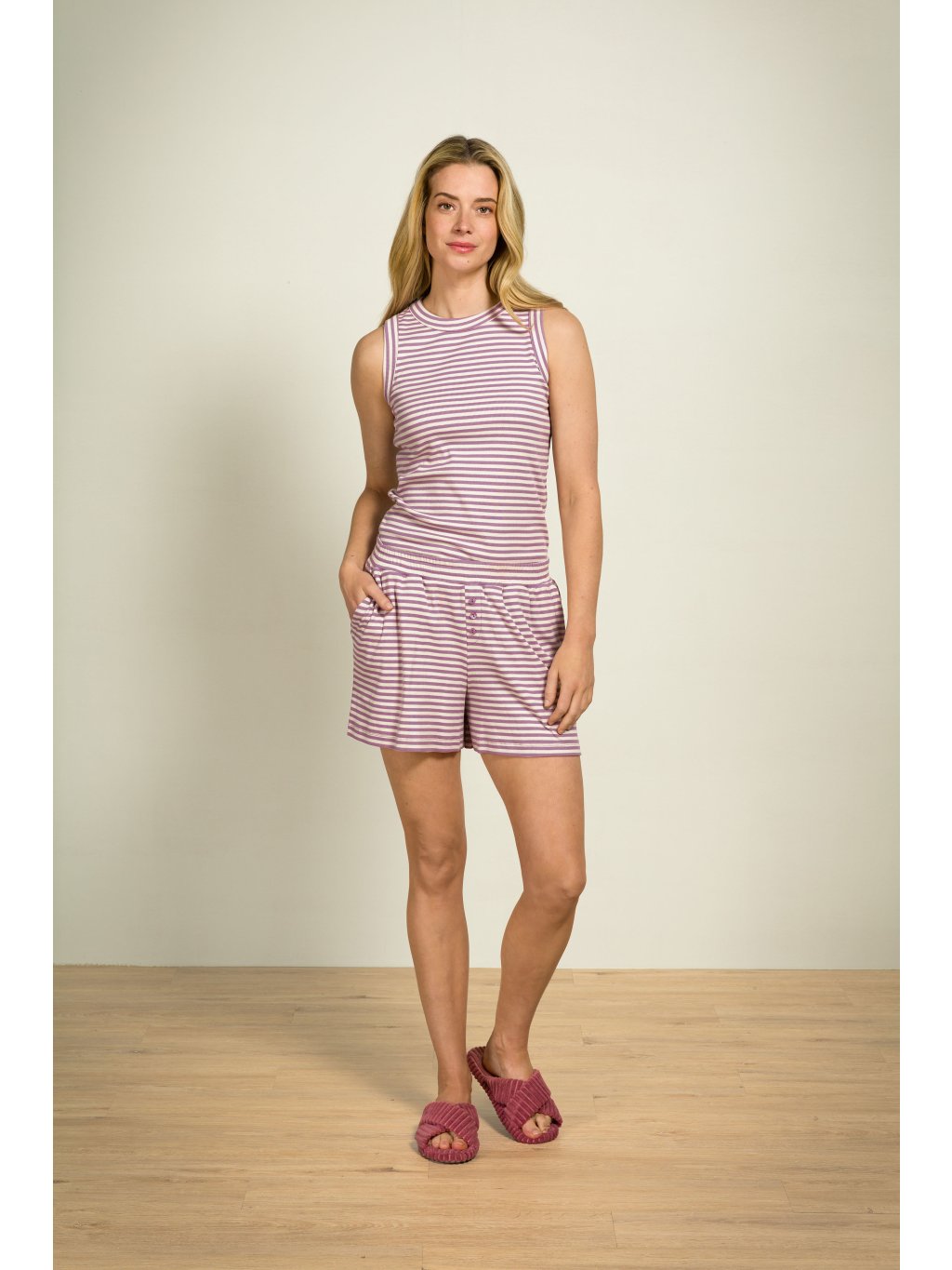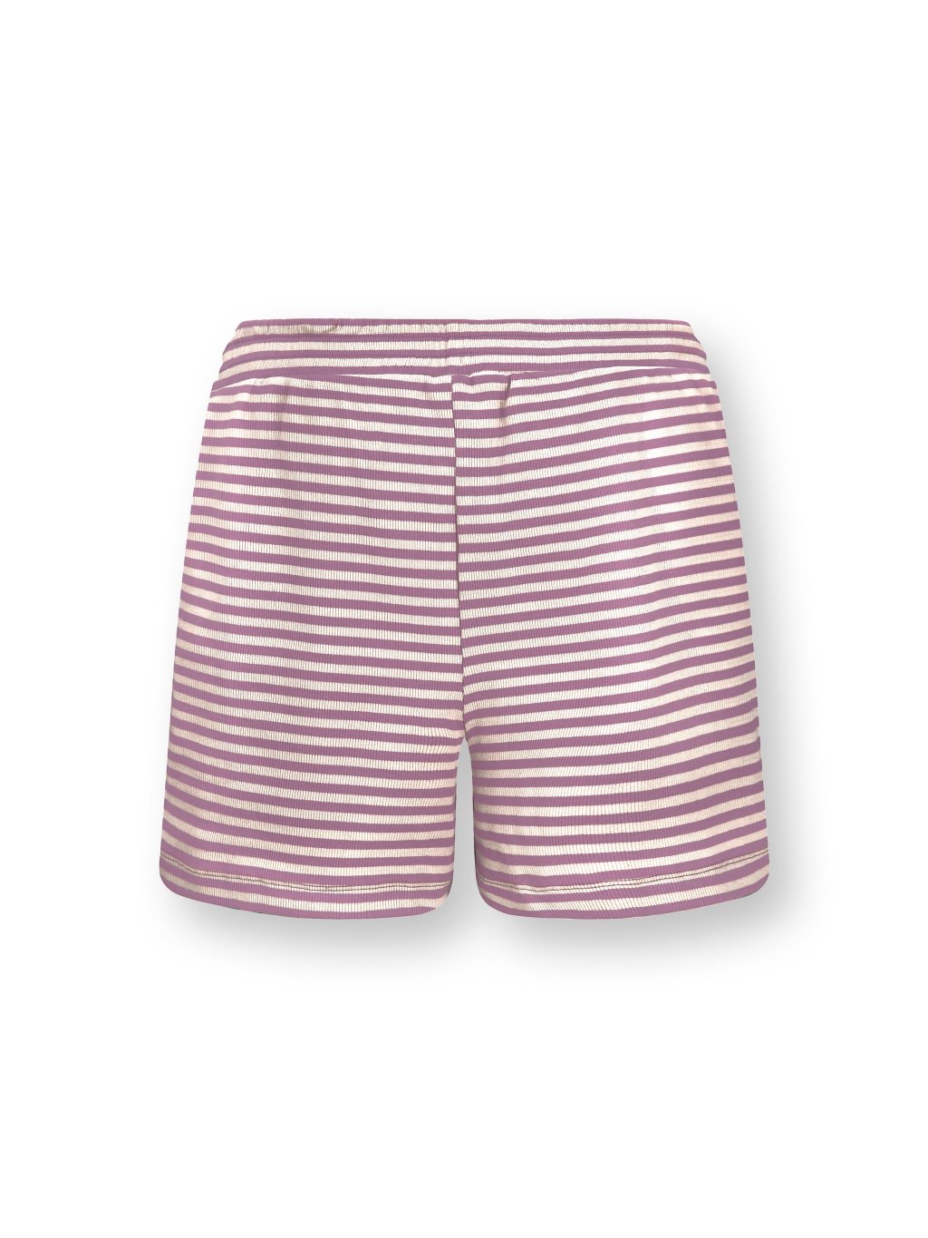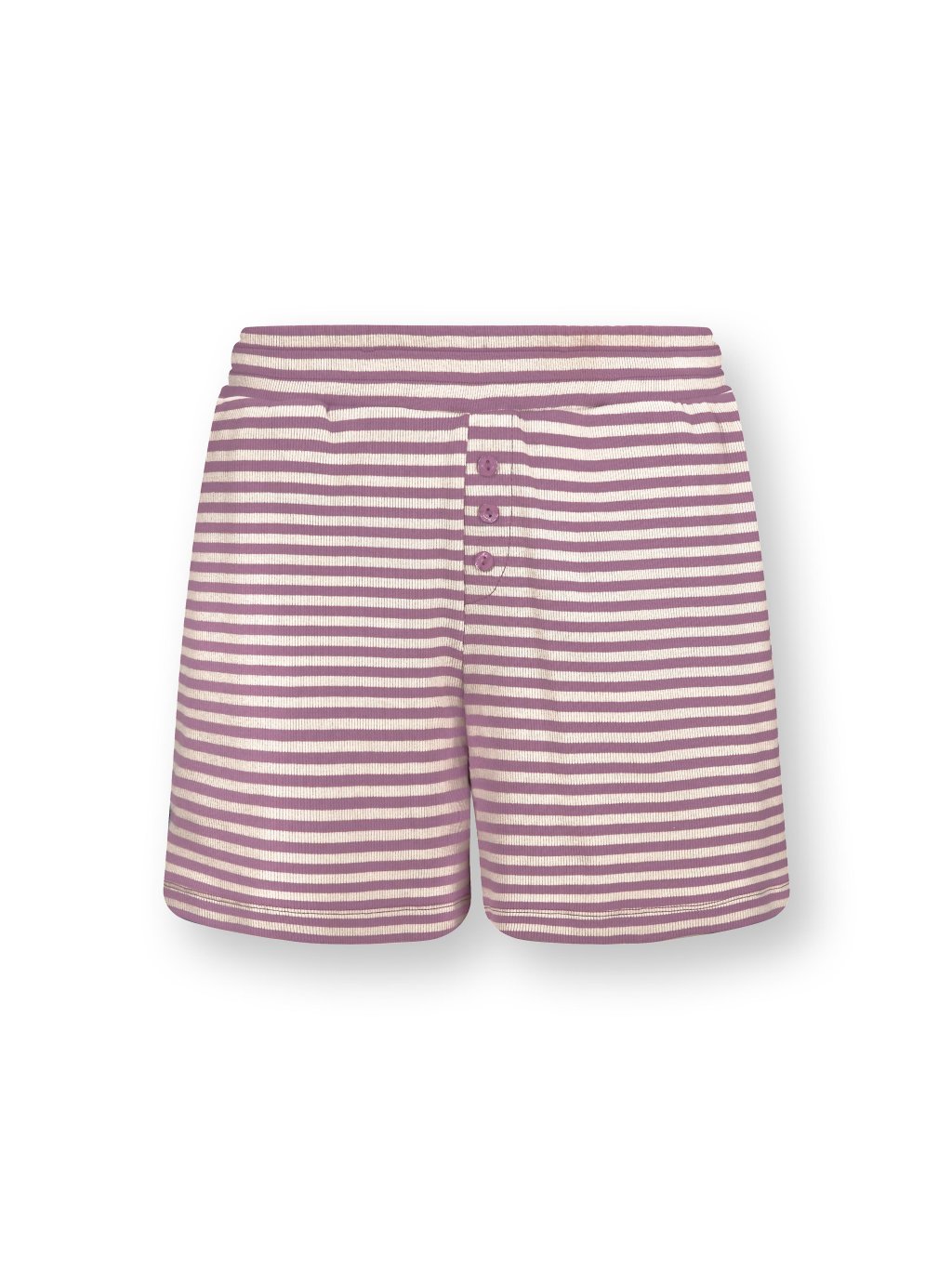 Pohodlné kraťasy vhodné jako součást pyžámka či domácí oděv pro chvíle odpočinku. Široký měkký pružný lem pasu a širší střih nohavic pro maximální pohodlí. Hravý jemný vodorovný proužek, vepředu zdobené třemi knoflíčky.