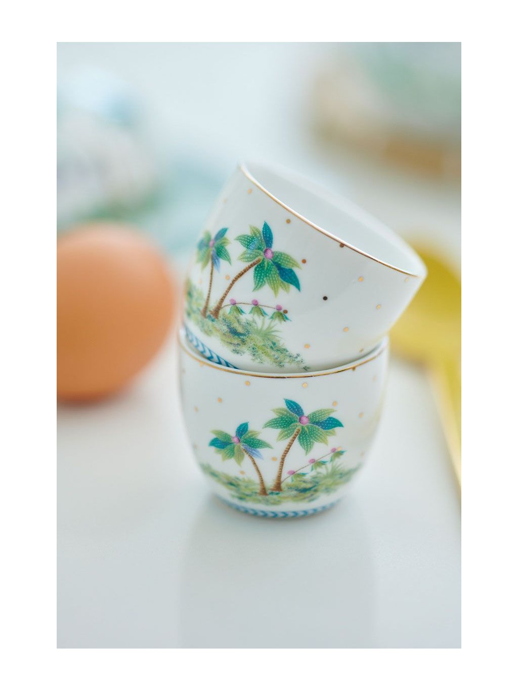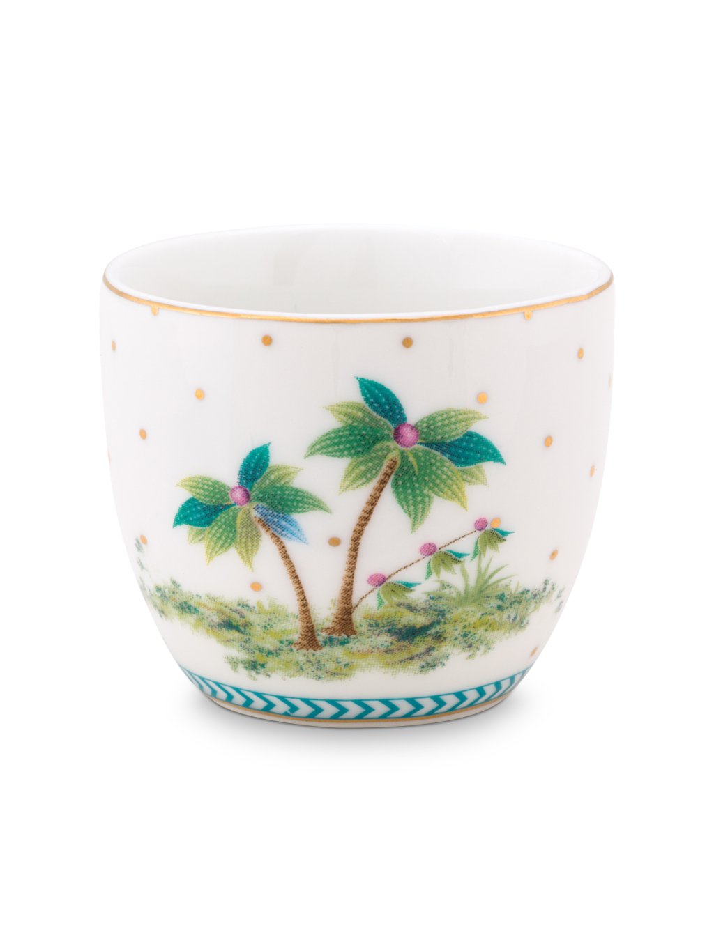 Kalíšek na vejce z kolekce Jolie. Bílá s motivem palem, roztomilý tak, že ho musíte mít, i kdybyste ho nepotřebovali ;-) Nabízíme v dalších velikostech i barvách. Objevte exotické kouzlo kolekce Jolie a sestavte si tu nejlepší kombinaci jen pro váš stůl.