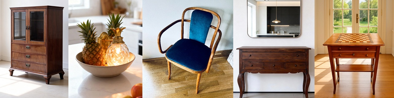 Vyberte si vintage křesla, židle, stoly, komody nebo bytové doplňky - porcelán, světla a vdechněte interiéru jedinečný a nadčasový design.