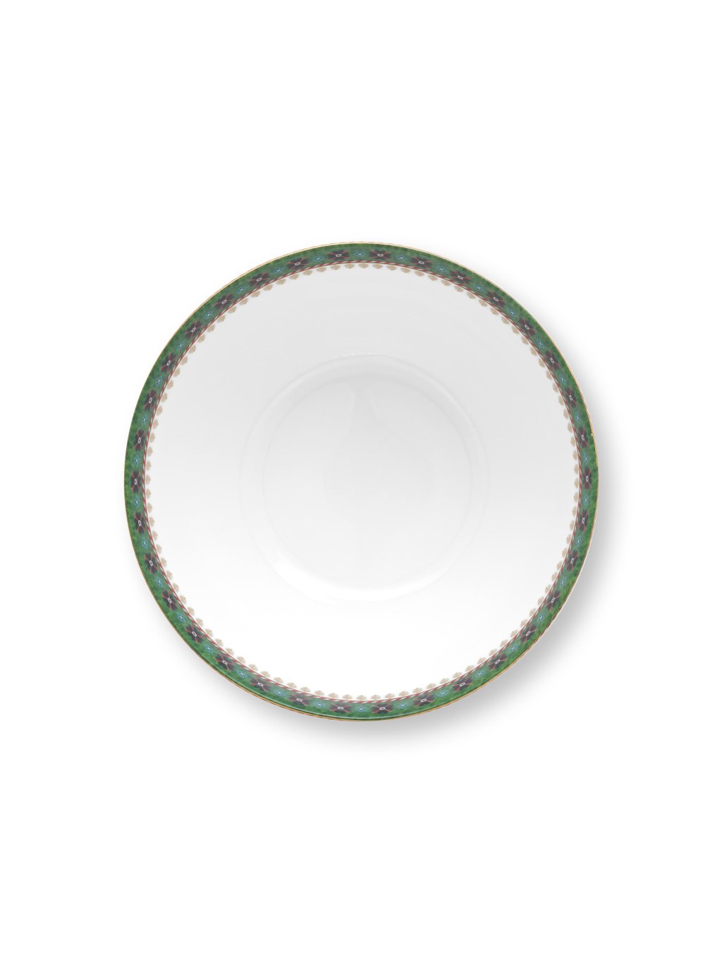 Miska Berry Blues o průměru 15 cm je zdobená po obvodu elegantním vzorem barevných květin a lesních plodů na modrém podkladu. Horní okraj je lemován páskem vzoru Clover (čtyřlístky). Projděte si celou kolekci, která vybízí k vytváření osobitých kombinací harmonických vzorů. Skvěle se kombinuje s oblíbenou kolekcí Flower Festival. Misky jsou v nabídce také v jiných dekorech a barvách.