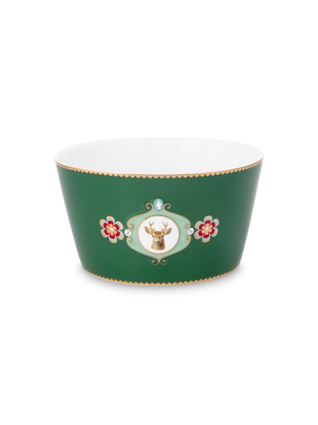 Miska z kolekce Love Birds magické tmavě zelené barvy s medailonkem. Podobné nabízíme také v jiných barvách a velikostech.