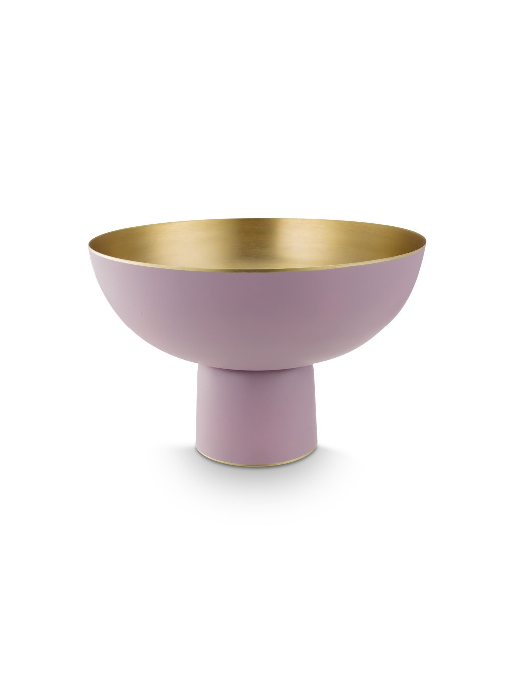 Lehká kovová mísa na noze v elegantní barvě s vnitřkem v odstínu zlaté, dno podlepené sametkou proti odření nábytku. K dispozici v různých barvách a velikostech.