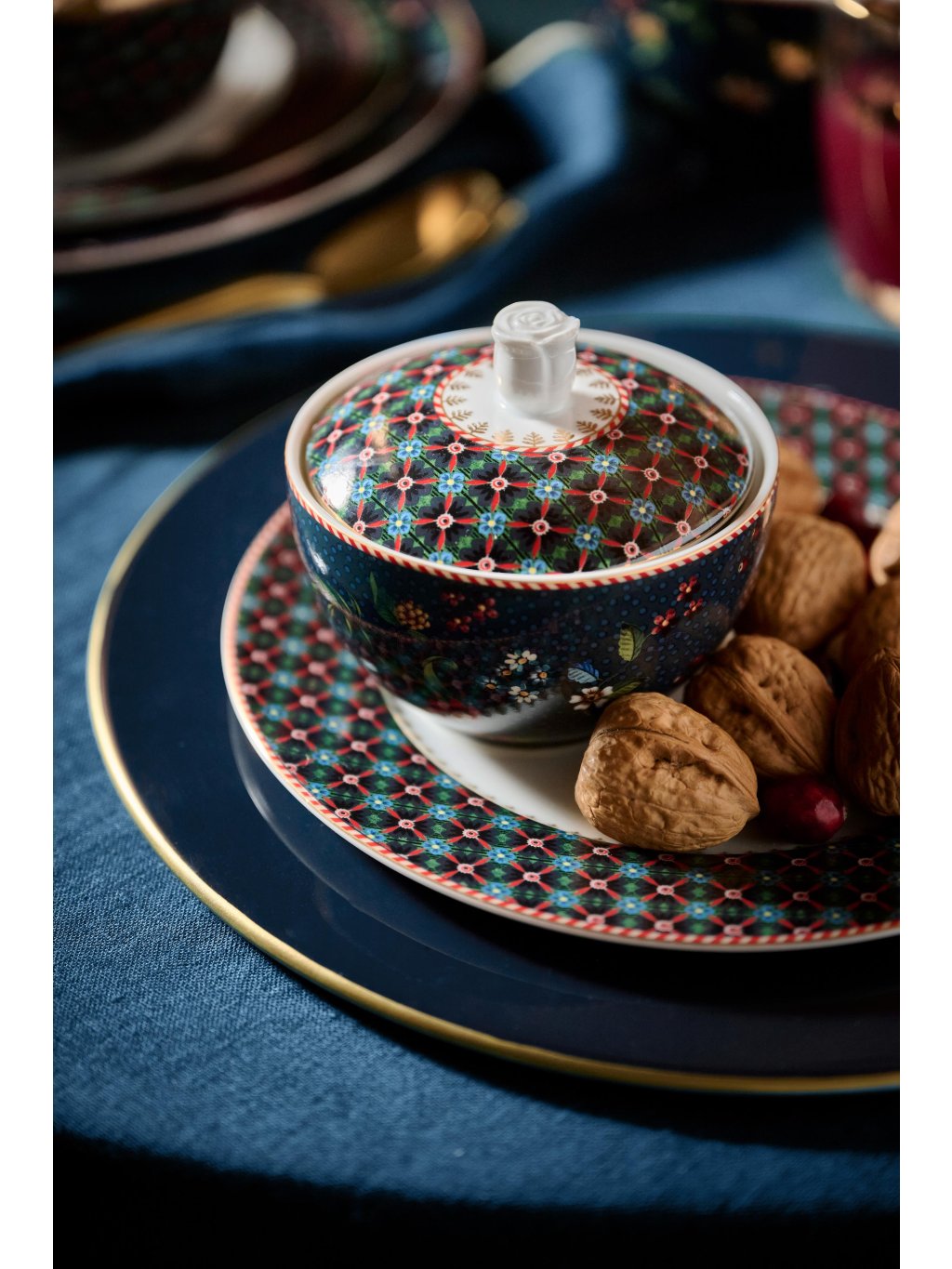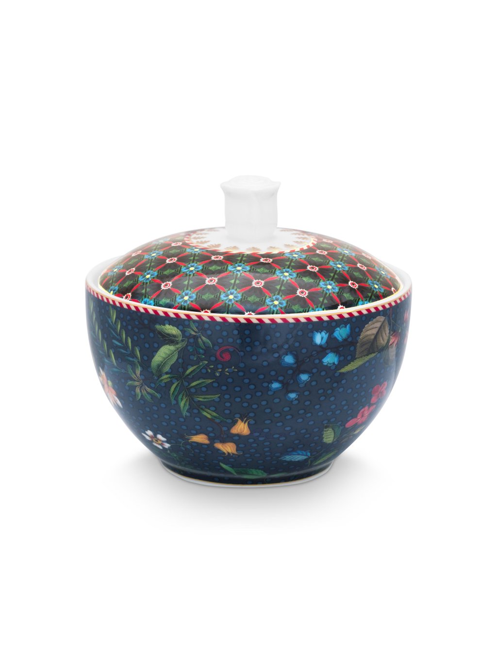 Cukřenka s víčkem o objemu 300 ml je zdobená po obvodu elegantním vzorem barevných květin a lesních plodů na modrém podkladu, víčko je zdobené dekorem Clover (čtyřlístky). Projděte si celou kolekci Berry Blues, která vybízí k vytváření osobitých kombinací harmonických vzorů. Cukřenky jsou v nabídce také v jiných dekorech a barvách.