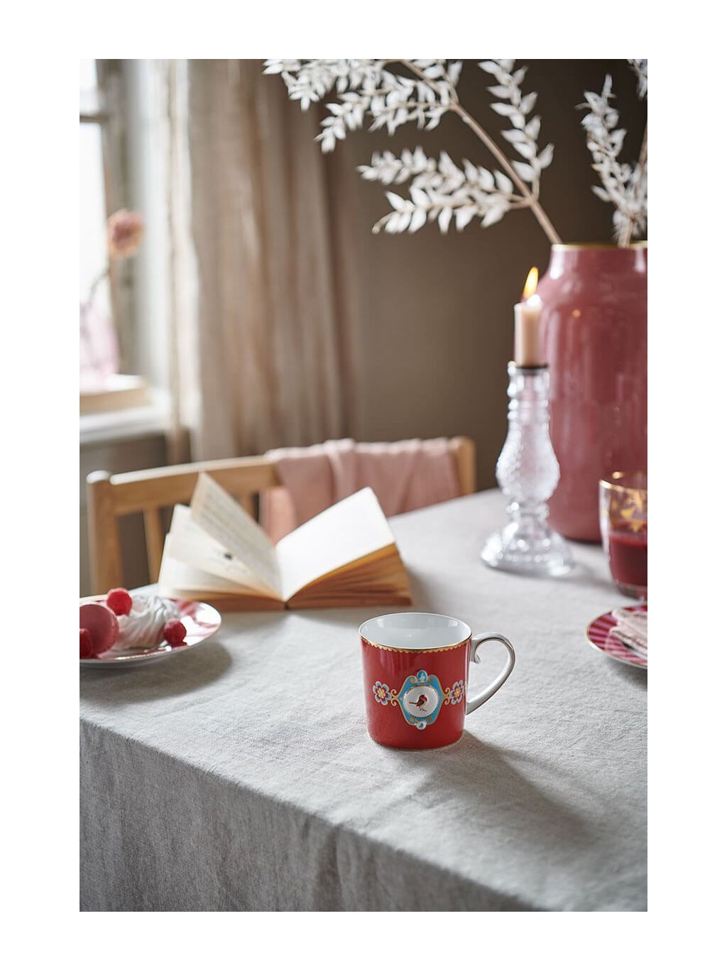 Hrnek Love Birds s medailonem s ptáčkem v jasné červené barvě vhodný na kávu. Nabízíme také v jiných barvách a velikostech.