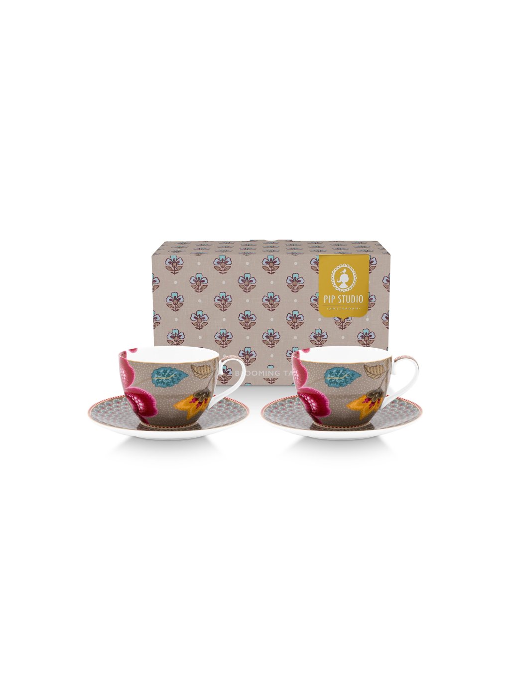 Šálek a podšálek Espresso Blooming Tales Fantasy khaki 120ml sada 2ks