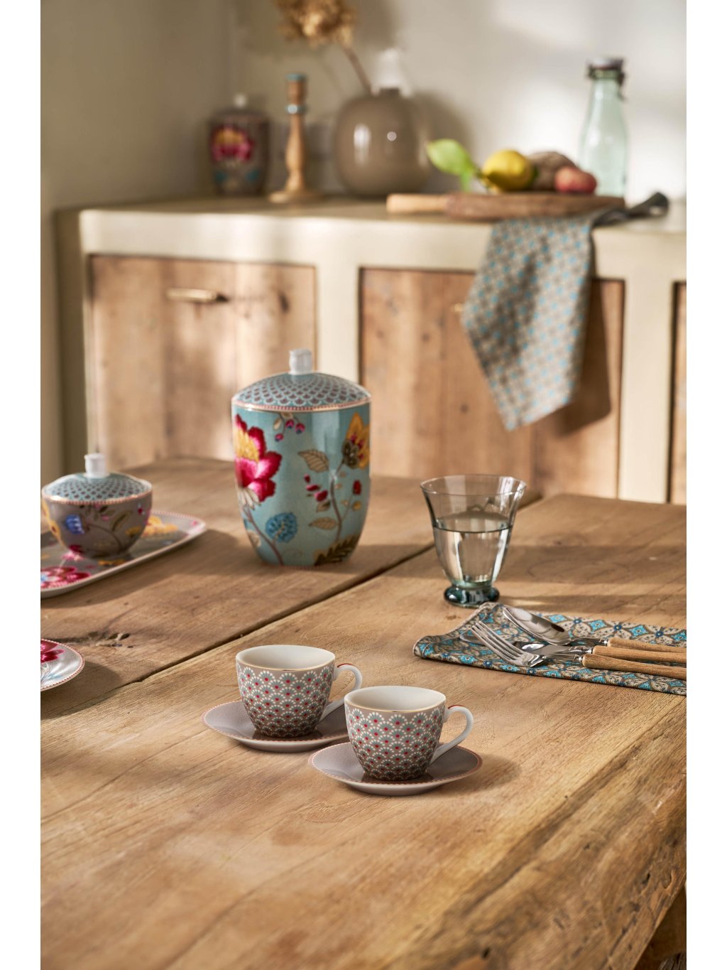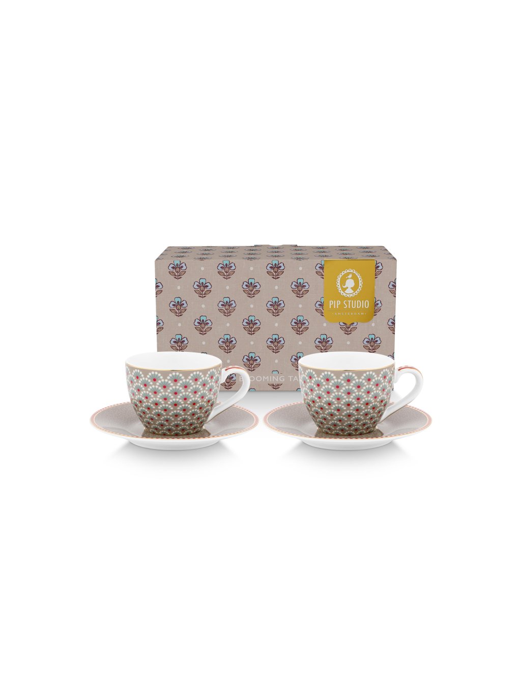 Šálek a podšálek Espresso Blooming Tales khaki 120ml sada 2ks