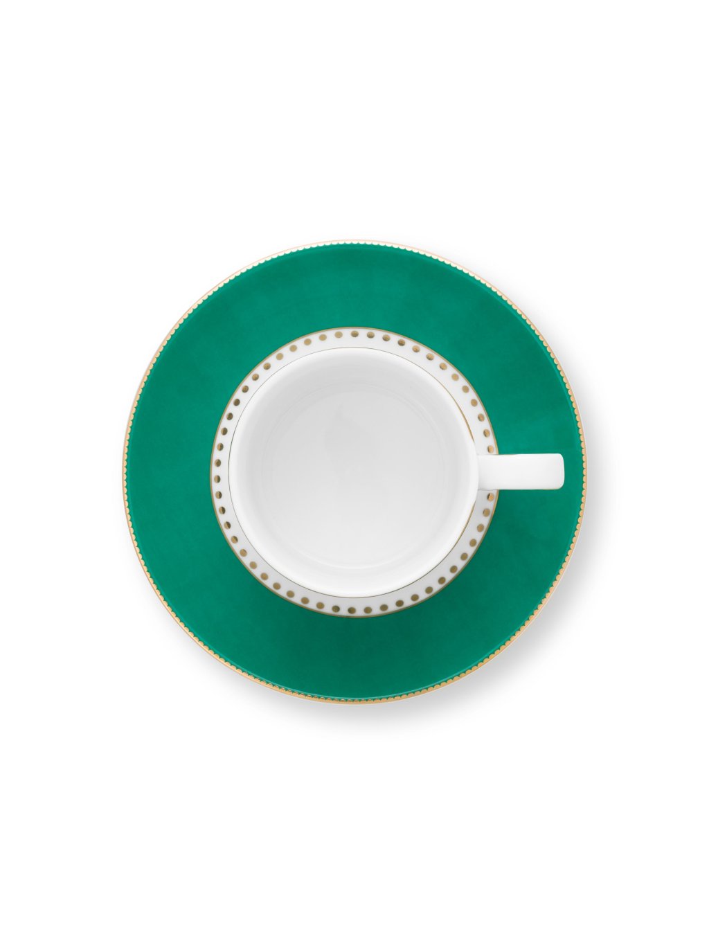 Šálek s podšálkem z kolekce Love Birds v kombinaci smaragdové a zelené barvy s medailonkem. Podobné nabízíme také v jiných barvách a velikostech.