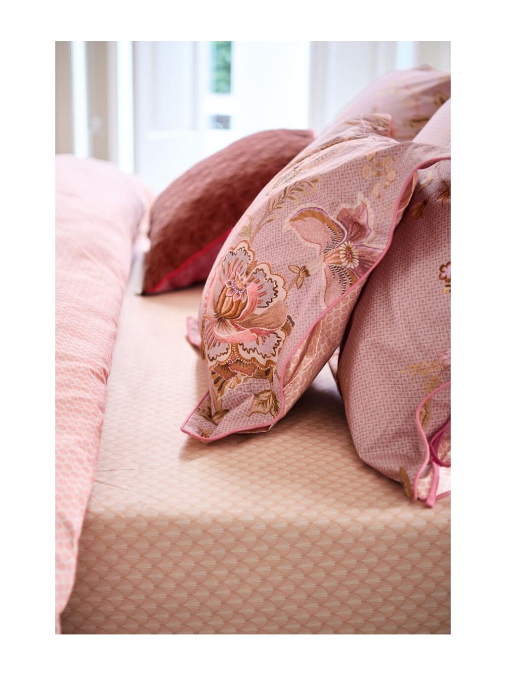 Prostěradlo z hustě tkaného bavlněného perkálu v jemných tlumených barvách s motivem lastur. Dekor prostěradla skvěle doplní rubové strany povlečení a polštářů.