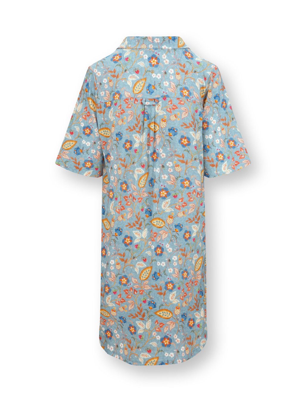 Noční košilka s propínáním a 3/4 rukávem z kolekce Jameela. Elegantní světle modrá barva je bohatě zdobená drobným květinovým motivem. Látka je velmi jemná, splývavá, díky 5% elastanu se krásně přizpůsobí Vašim křivkám. Potisk Jameela zobrazuje elegantní větve s malými listy a květy, které při bližším pohledu vypadají jako ručně vyšívané.