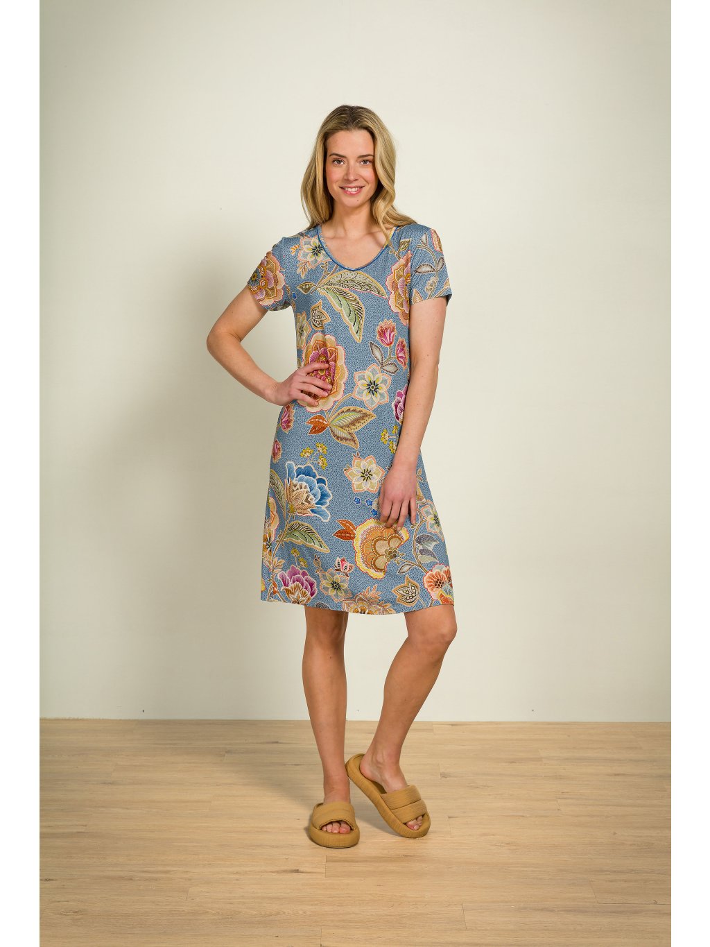 Noční košile či šaty jsou vhodné také jako domácí oděv pro chvíle odpočinku. Mají krátký rukáv, výstřih do jemného V.