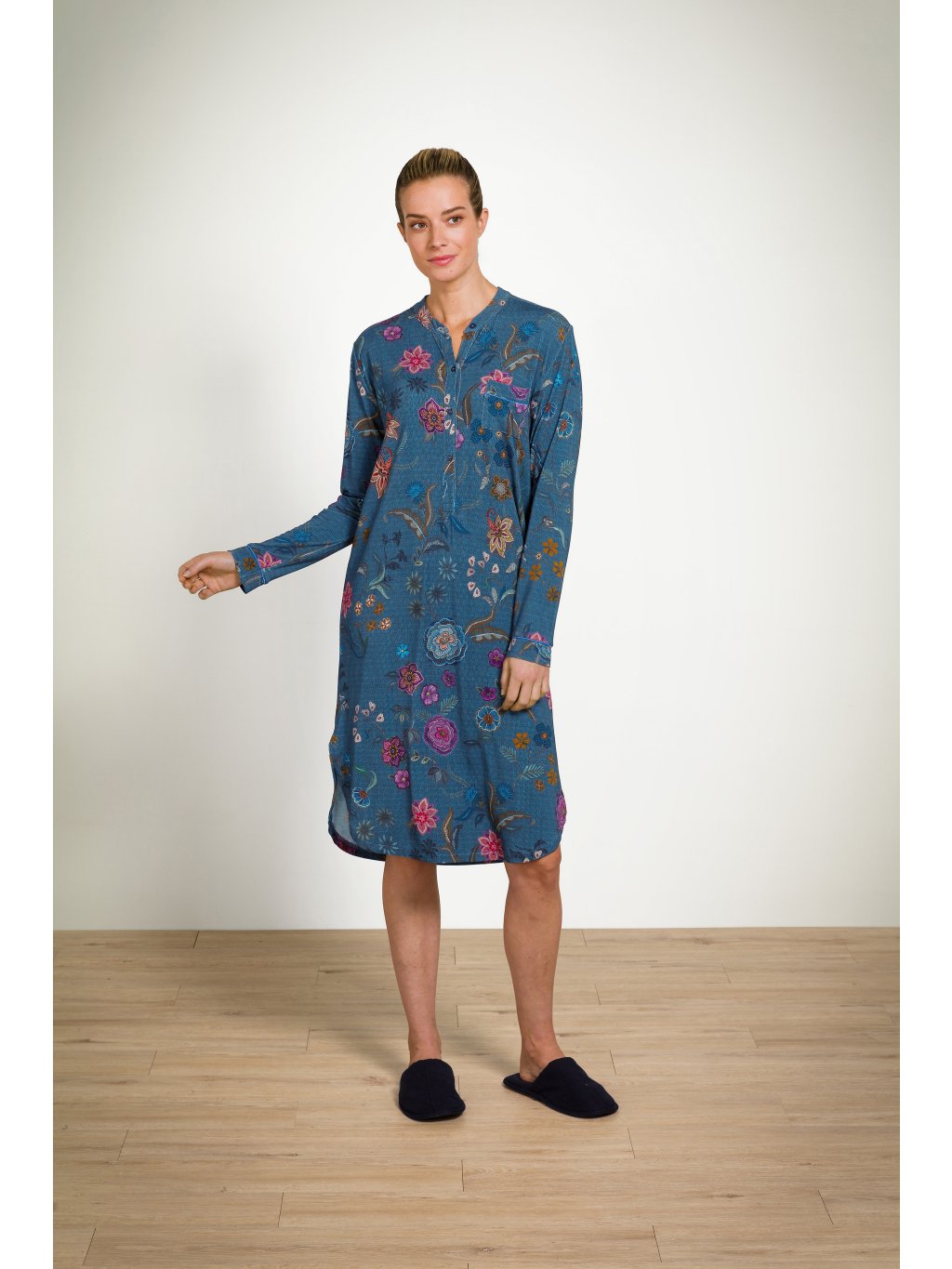 Lehká a hebká noční košile Diogo s dlouhým rukávem v pohodlném volném střihu. Pružná směs viskózy a elastanu je hladká, prodyšná a příjemná na nošení. Zdobí ji potisk Coco Flower s ručně kreslenými fantazijními květy, puntíky a proužky. Skvěle vypadá s ladícím kimonem.