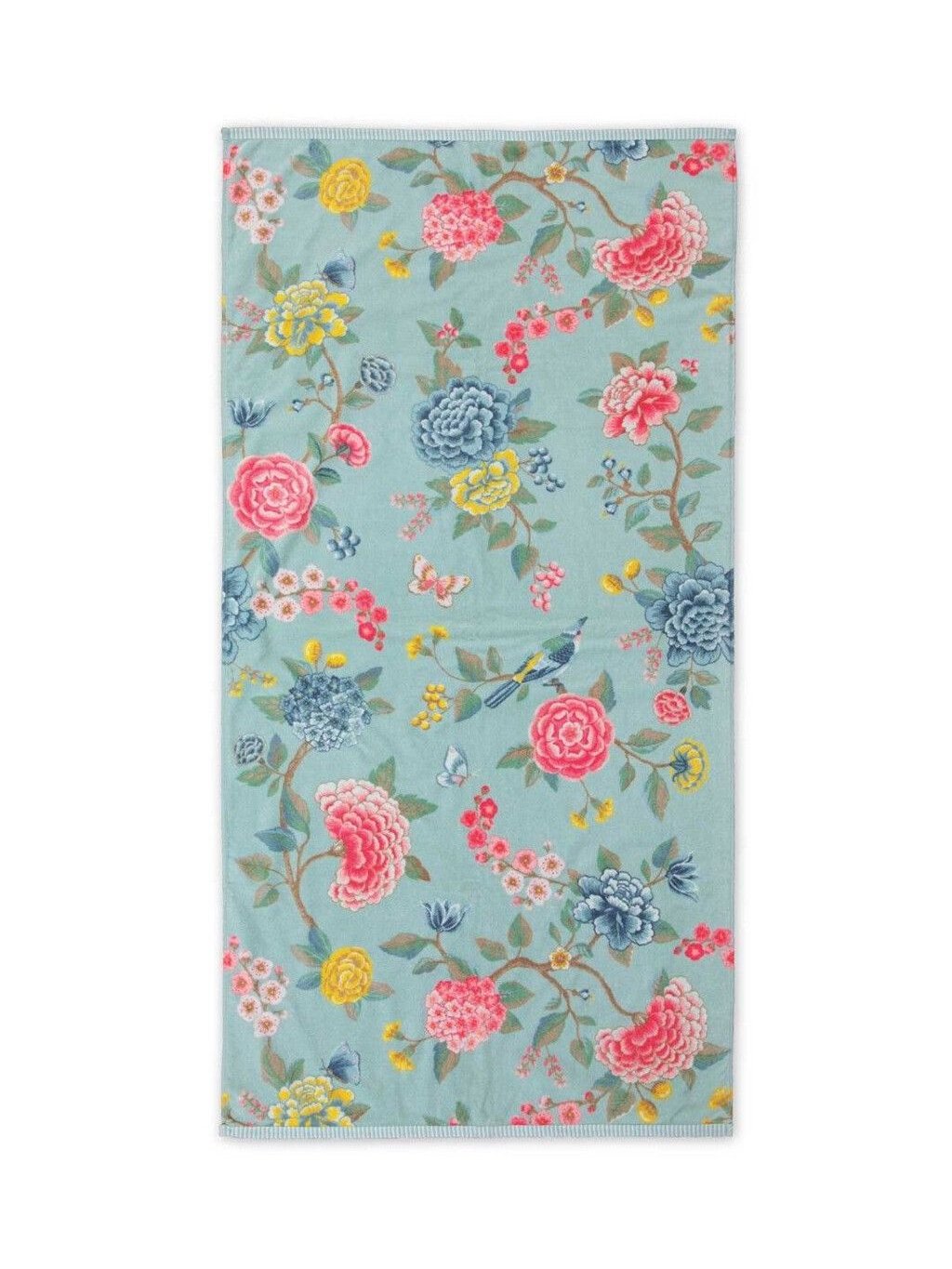 Osuška s jemným květinovým vzorem od Pip Studio modré barvy, vyrobena ze 100% bavlněného froté vysoké kvality.