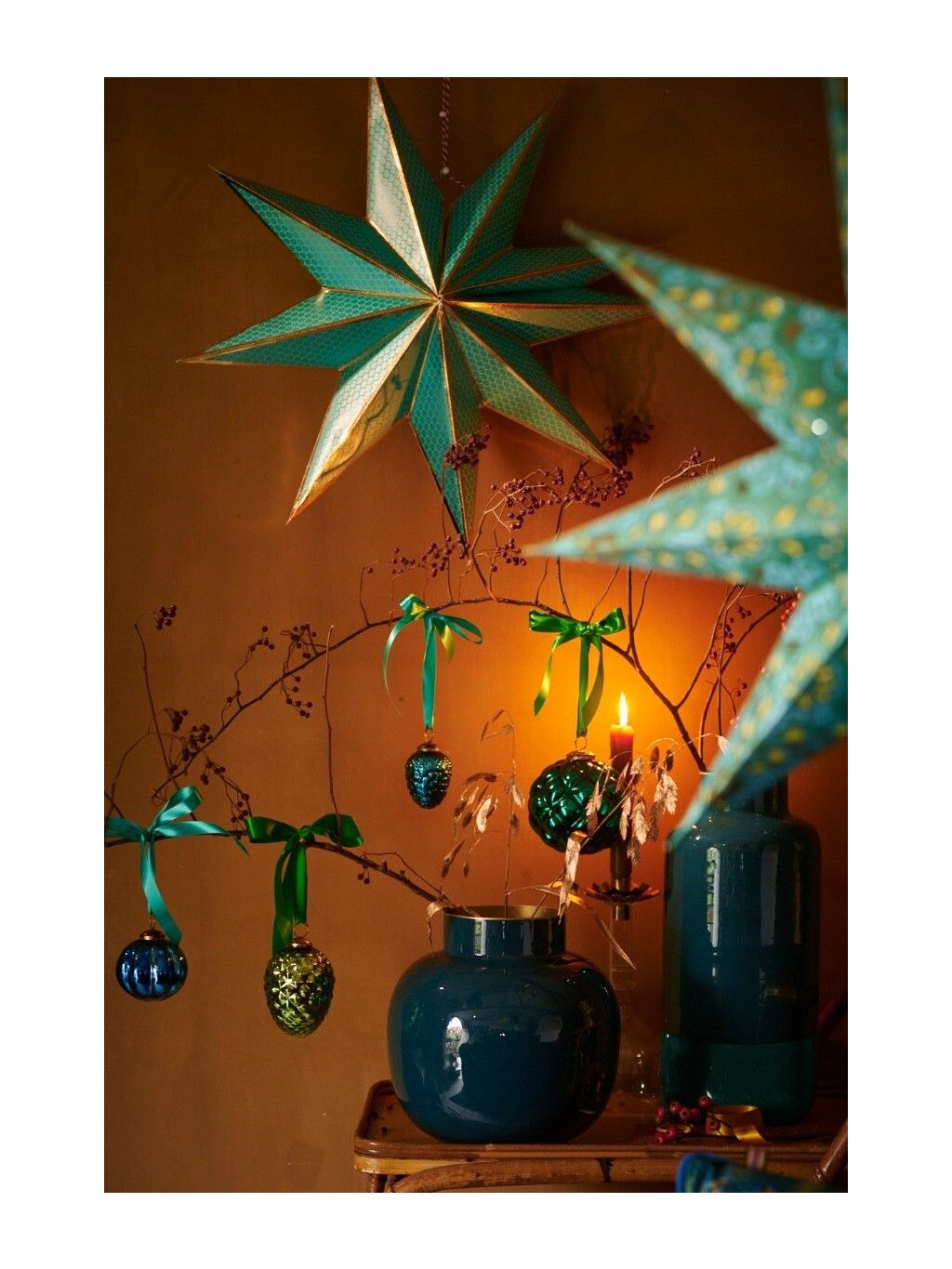 Tradiční dekorace z foukaného skla. Ideální jako ozdoba vánočního stromku nebo jako součást vánočních interiérových dekorací. Lze ji využít i k dekoraci jídelního stolu. Nabízíme různé tvary a barvy.