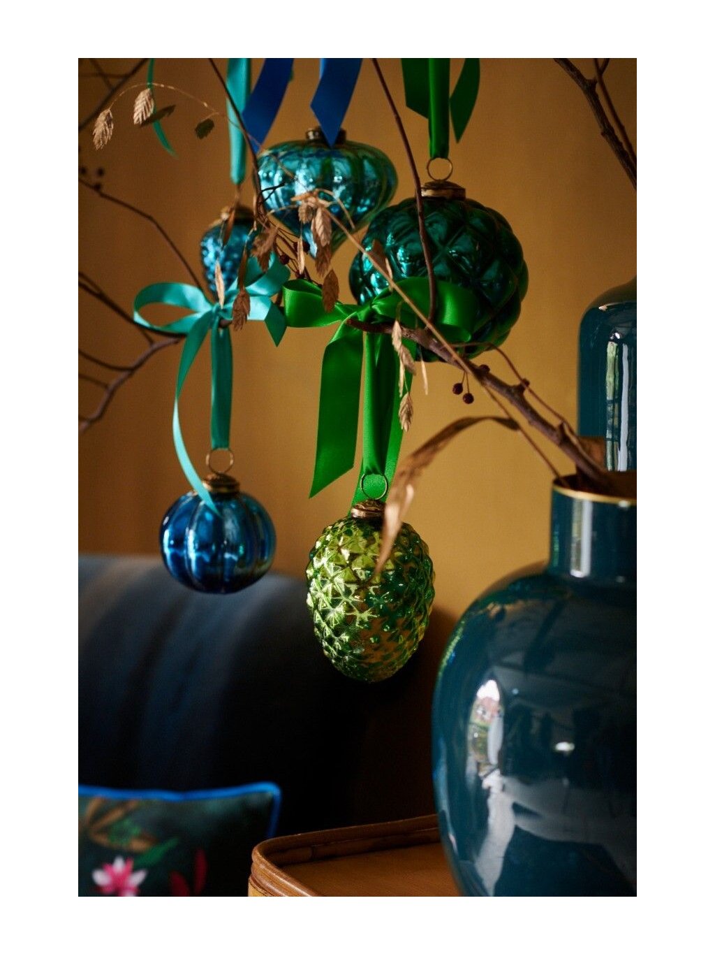 Vánoční ozdoba z foukaného skla ve tvaru šišky velikosti 10cm.