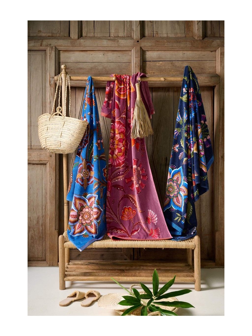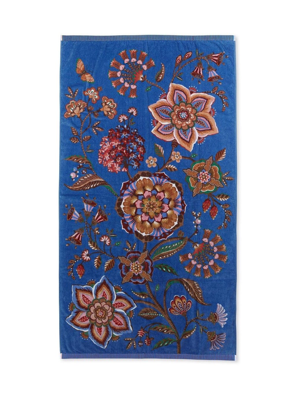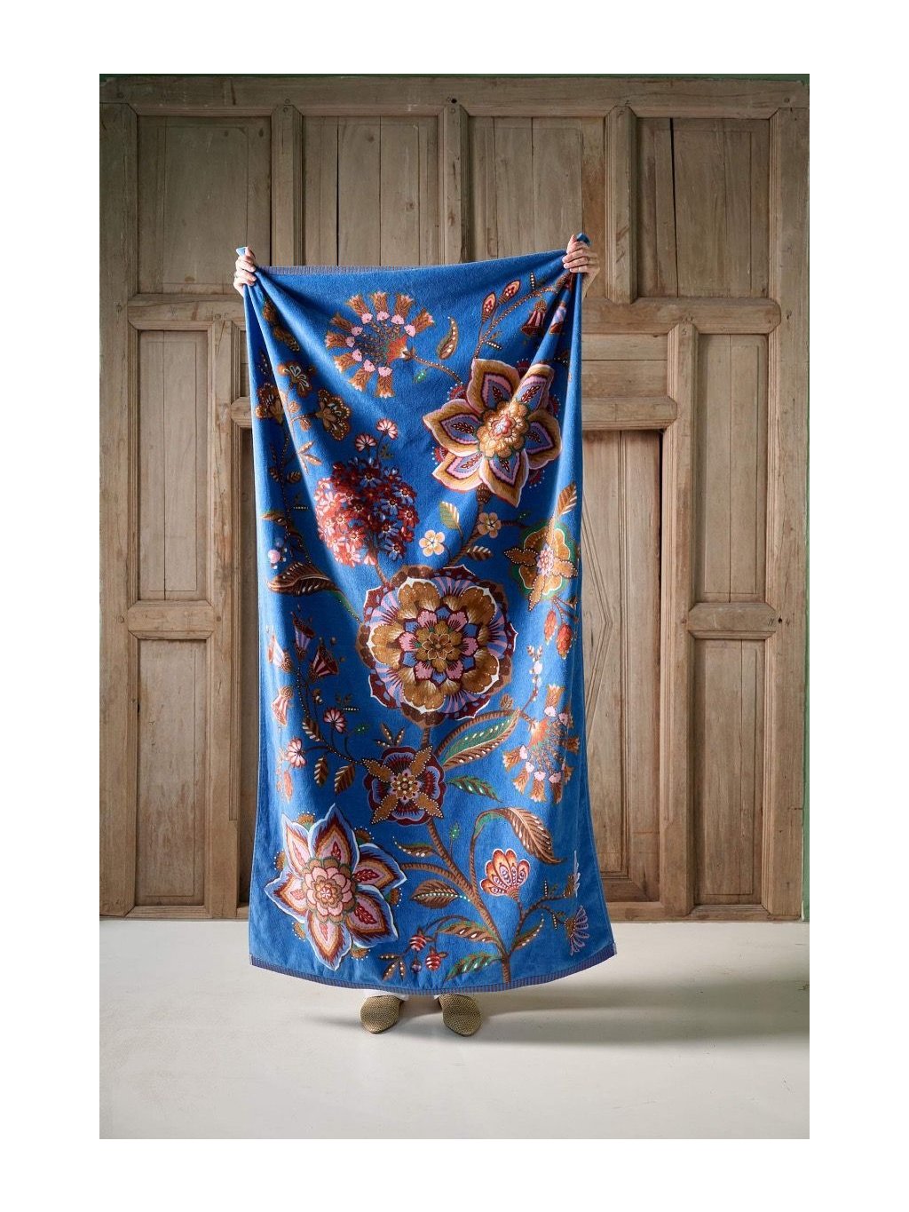 Osuška plážová s florálním vzorem od Pip Studio modré barvy, vyrobena ze 100% bavlněného froté vysoké kvality.