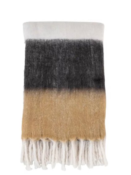 Přehoz na postel či pléd na křeslo je vyroben z jemné pletiny s vysokým podílem vlny ( 52% vlna, 48% polyester) s vlasem. Je měkký a hřejivý, nekouše a lze ho použít i jako pléd nebo malou přikrývku. Má ozdobné třásně v bílé barvě.