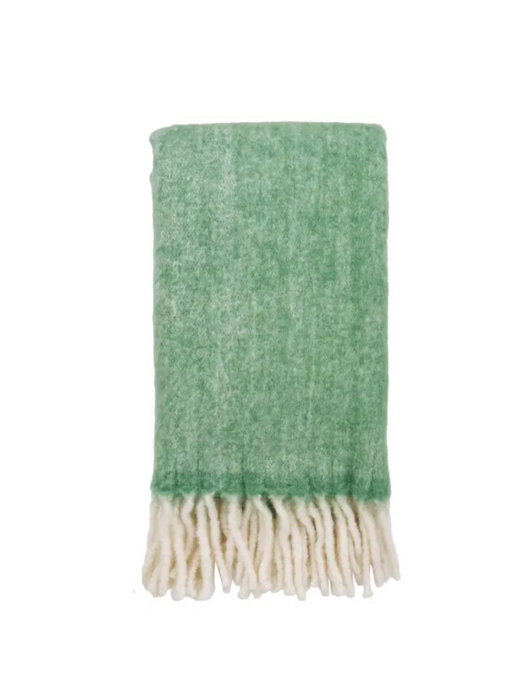 Přehoz na postel či pléd na křeslo je vyroben z jemné pletiny s vysokým podílem vlny ( 52% vlna, 48% polyester) s vlasem. Je měkký a hřejivý, nekouše a lze ho použít i jako pléd nebo malou přikrývku. Má ozdobné třásně v bílé barvě.