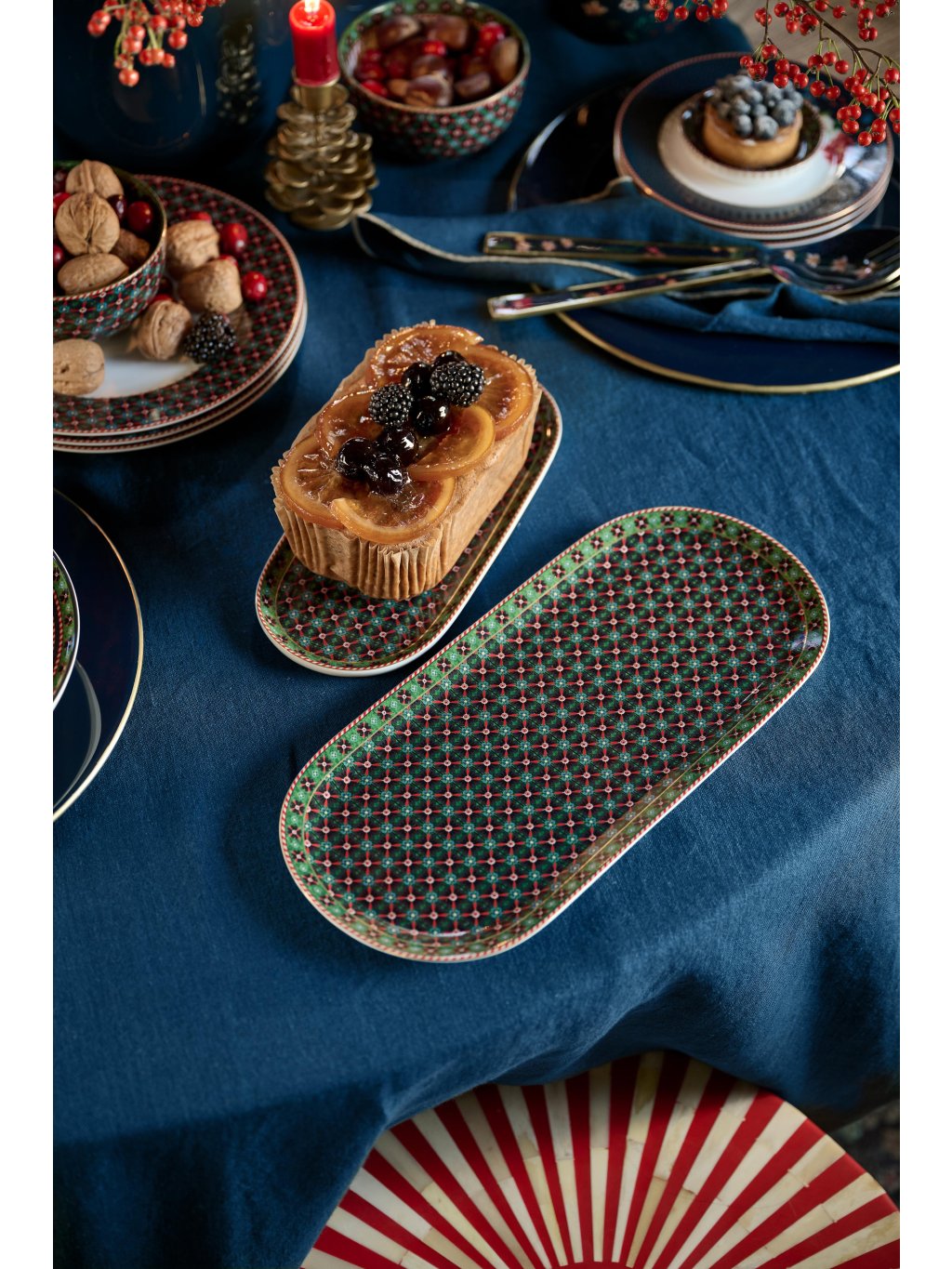 Dortový tác rozměru 33,3x15,5 cm je zdobený elegantním pravidelným vzorem Clover (čtyřlístky). Vhodný na servírování malého občerstvení nebo dortíků. Projděte si celou kolekci Berry Blues která vybízí k vytváření osobitých kombinací harmonických vzorů. Tácy jsou v nabídce také v jiných dekorech a barvách.