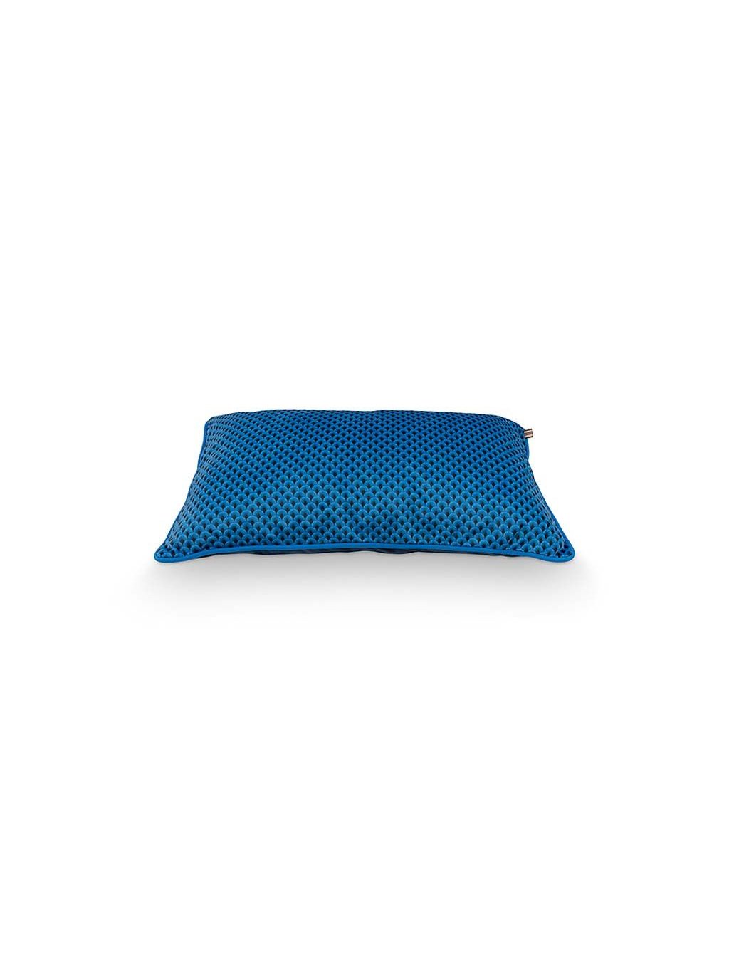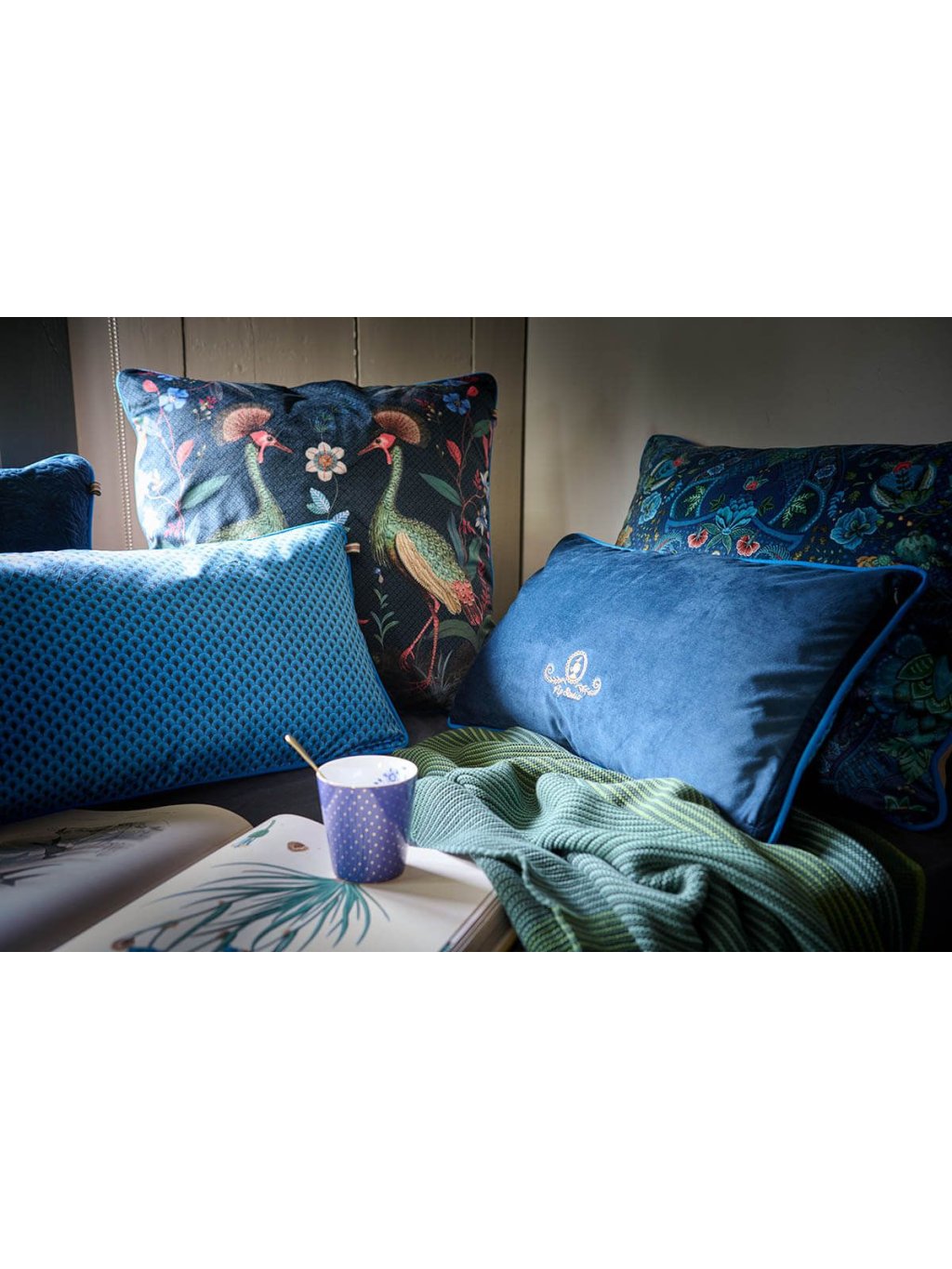 Atraktivní vzor tohoto polštáře je pravidelný a na pohled živý. Zadní strana je jednobarevná s vyšitým zlatým logem PIP Sudio. Lem polštáře je zářivě modrý, vždy tak v interiéru upoutá pozornost. Polštář má zapínání na zip, prodáváme jej včetně výplně, kterou lze vyjmout a vyprat.