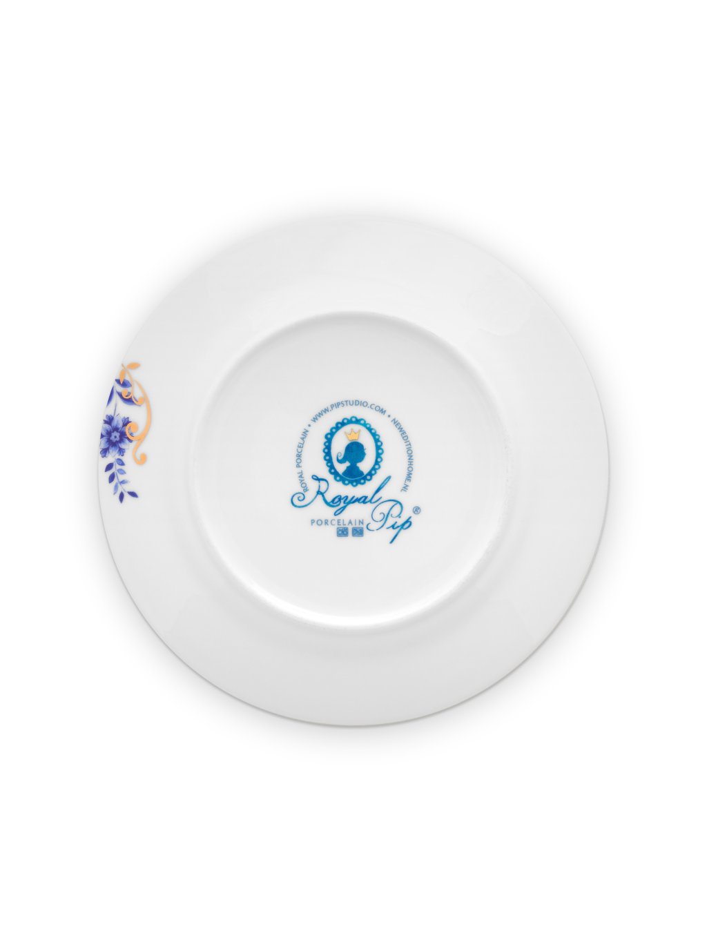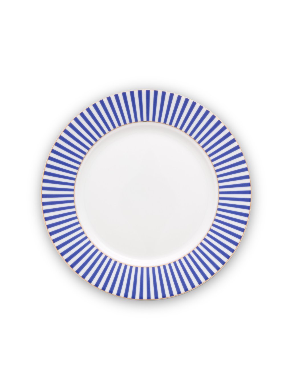Royal Stripes - snídaňový talíř o průměru 21 cm, zdobený jemným bílo-modrým proužkem, bílým středem a zlatými detaily, zespoda jemná kytička. K dispozici také v jiných velikostech. Prozkoumejte celou kolekci Royal Stripes a Royal White a sestavte si tu nejlepší kombinaci.