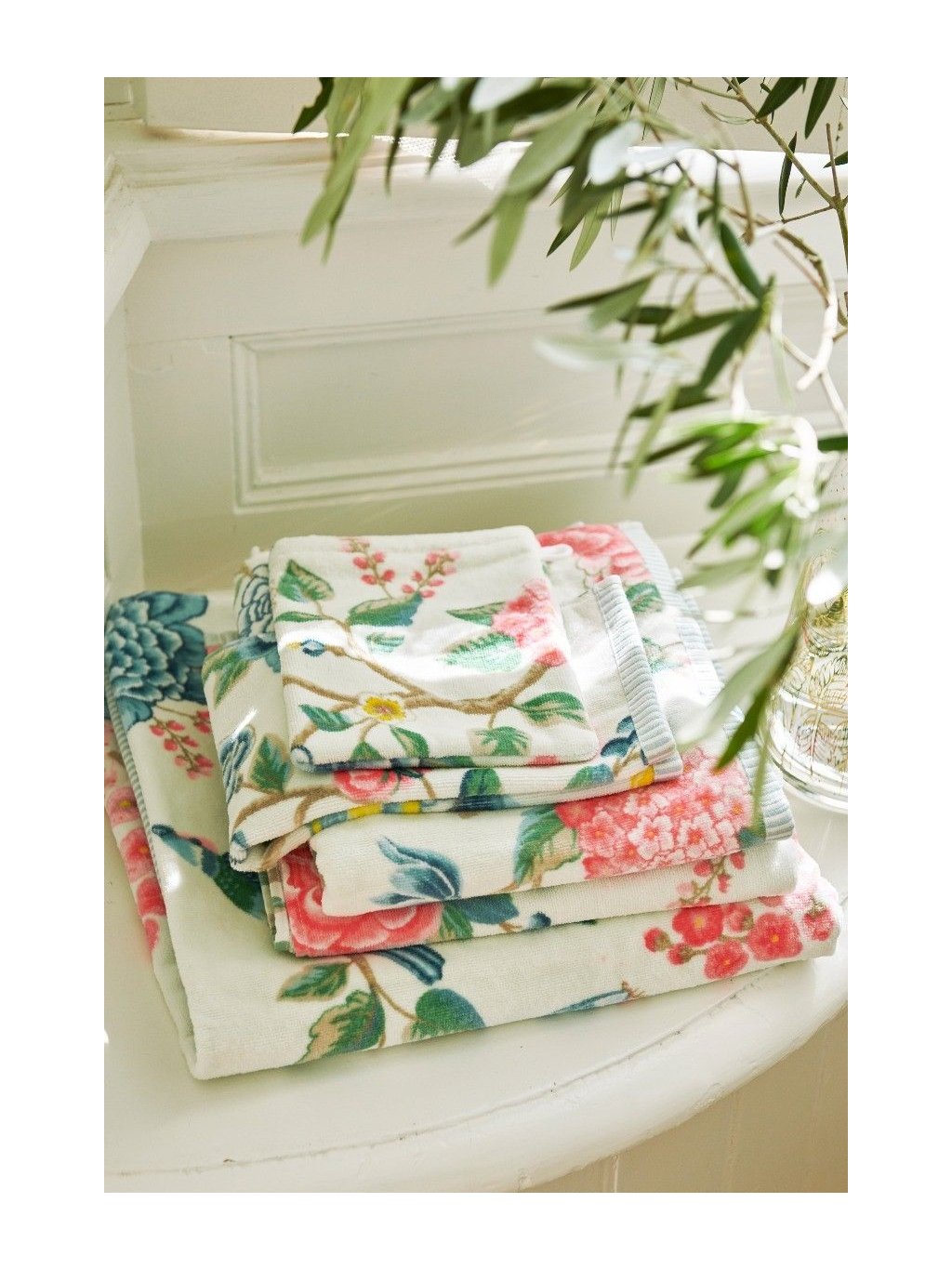 Ručník s výraznějším květinovým vzorem od Pip Studio bílé barvy, vyrobena ze 100% bavlněného froté vysoké kvality.