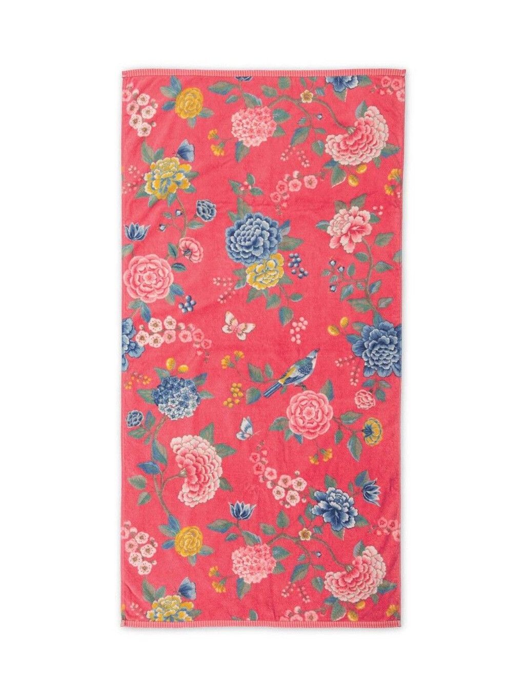 Ručníky s květinovým vzorem od Pip Studio korálové barvy, vyrobené ze 100% bavlněného froté vysoké kvality o gramáži 500g/m2.