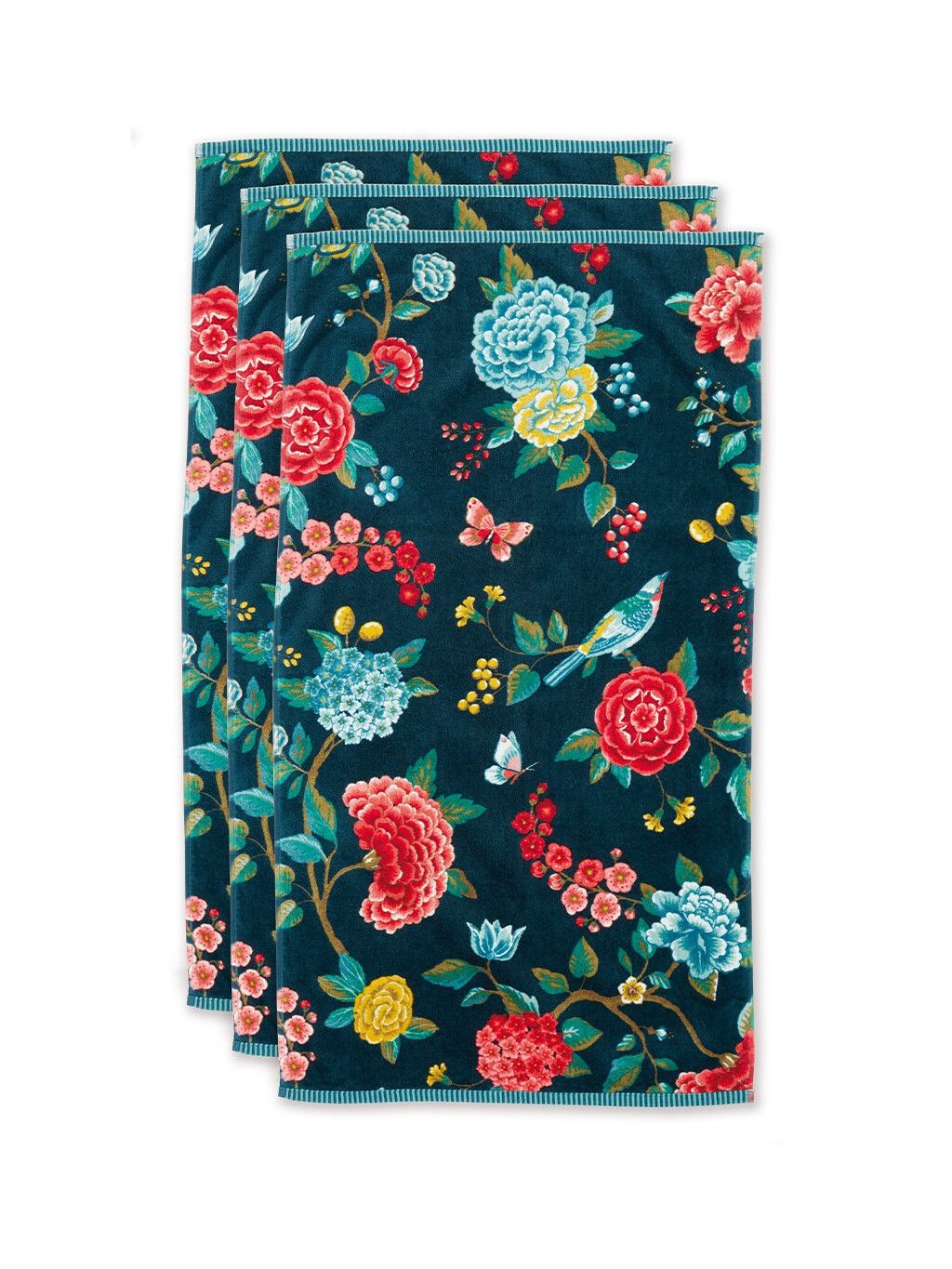 Ručníky s květinovým vzorem od Pip Studio - tmavomodrá