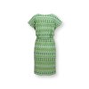 Lehká tunika z kolekce Ashanti s krátkými rukávy, jemně vykrojeným dekoltem a stahovací šňůrkou v pase Design Ashanti je tvořen horizontálními cik-cak pruhy složených z květin, motýlů a listů. Barevné pruhy se jemně prolínají do sebe a vytváří zajímavý efekt.