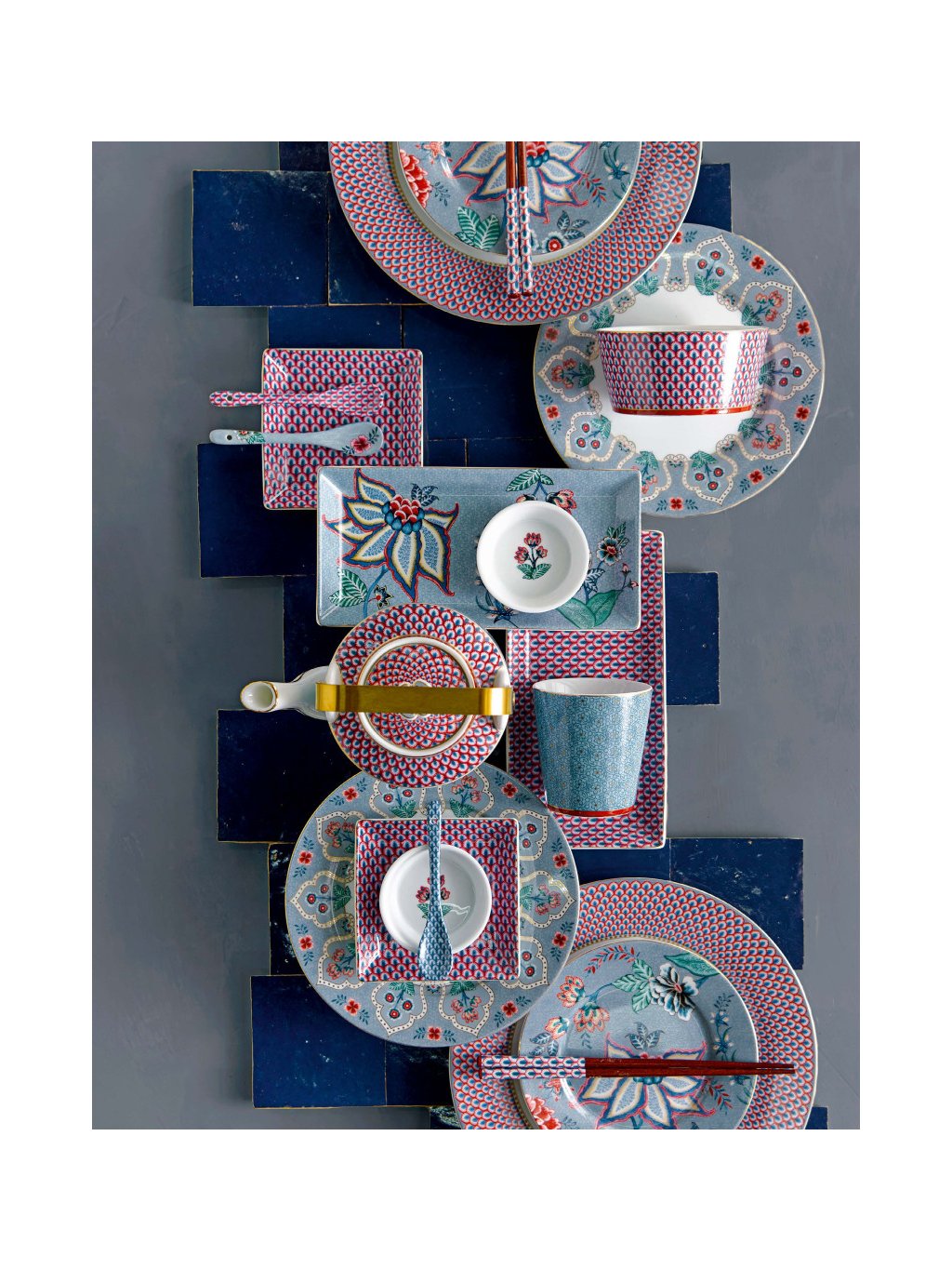 Sushi set Round Flower Festival Oriental modrá sada 6 ks
