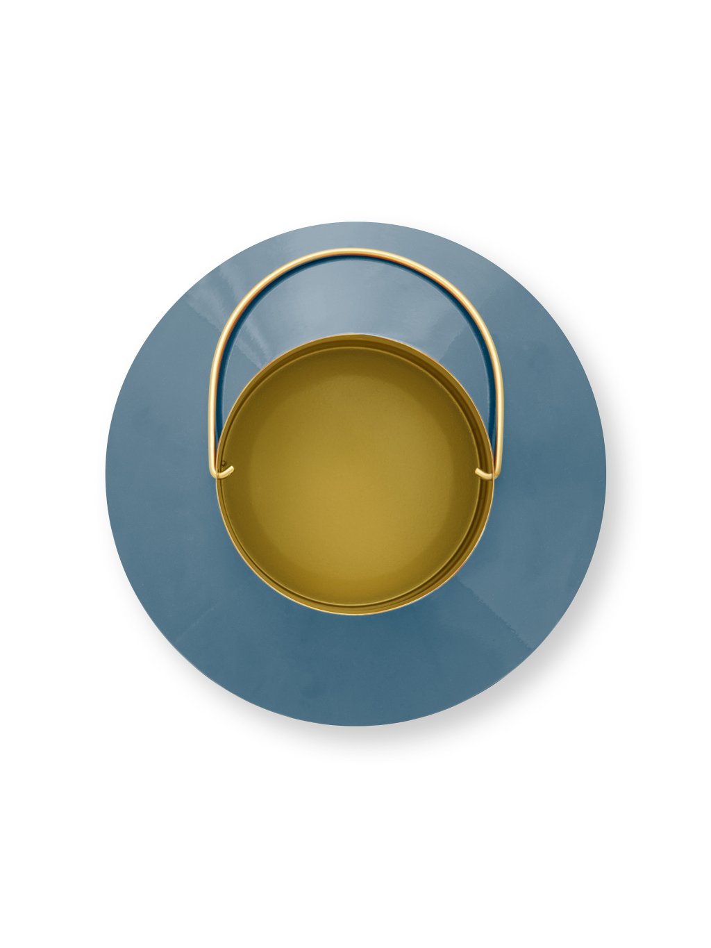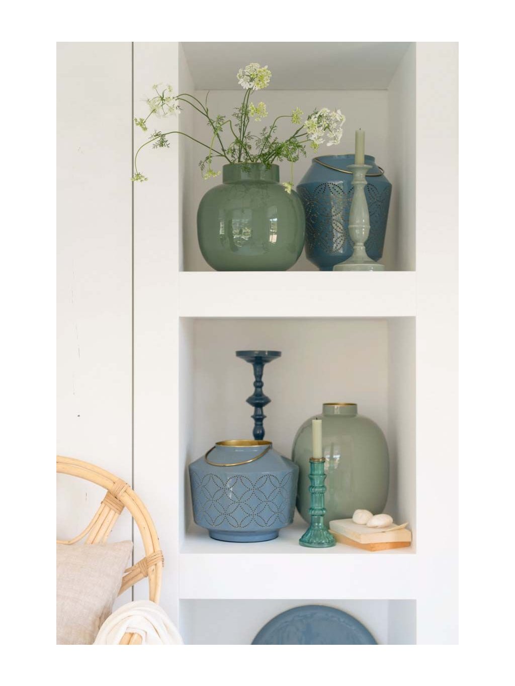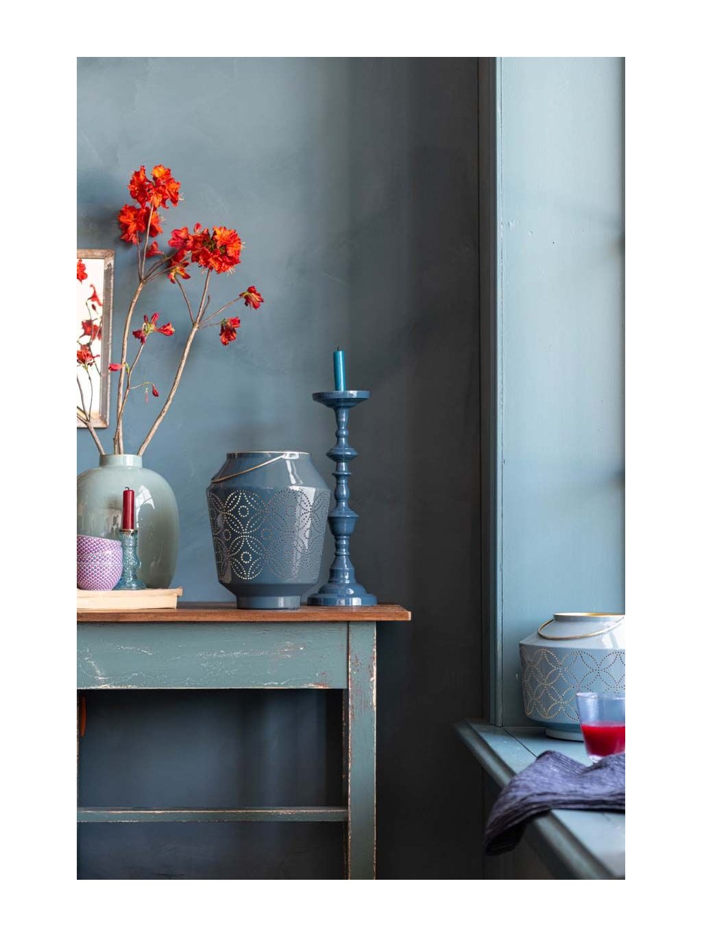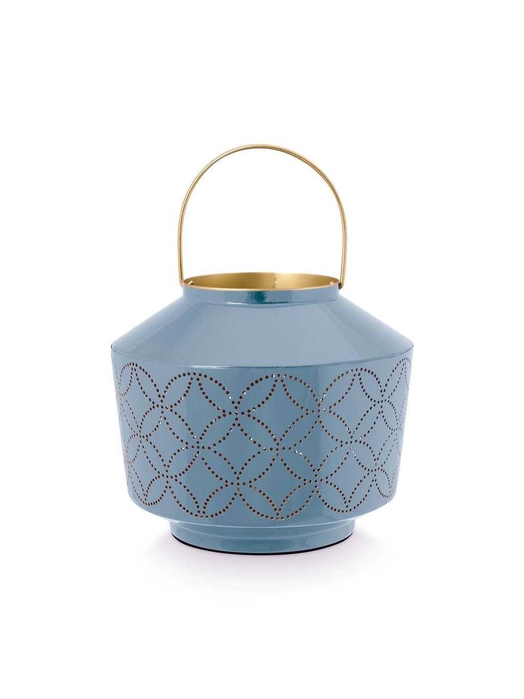 Lucerna se smaltovaným povrchem s perforovaným zdobením. Vnitřek ve zlaté barvě. S uchem. Výška 22 cm. K dispozici také v jiných odstínech a velikostech.