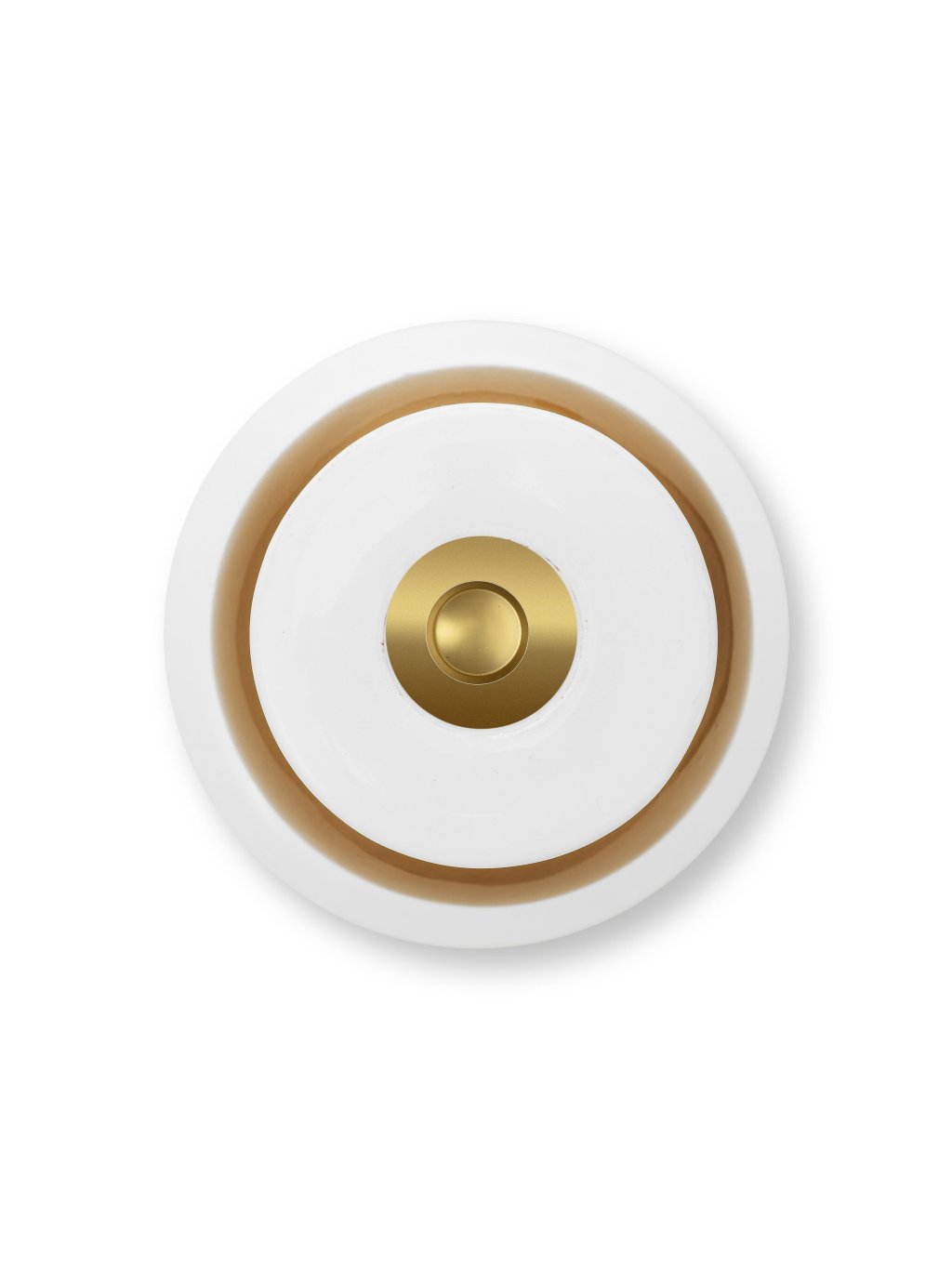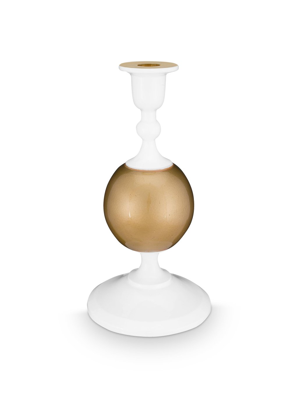 Kovový svícen na svíčku. Horní miska ve zlaté barvě. K dispozici také v jiných odstínech a velikostech. Výška svícnu 24 cm. Ideální pro váš sváteční stůl.