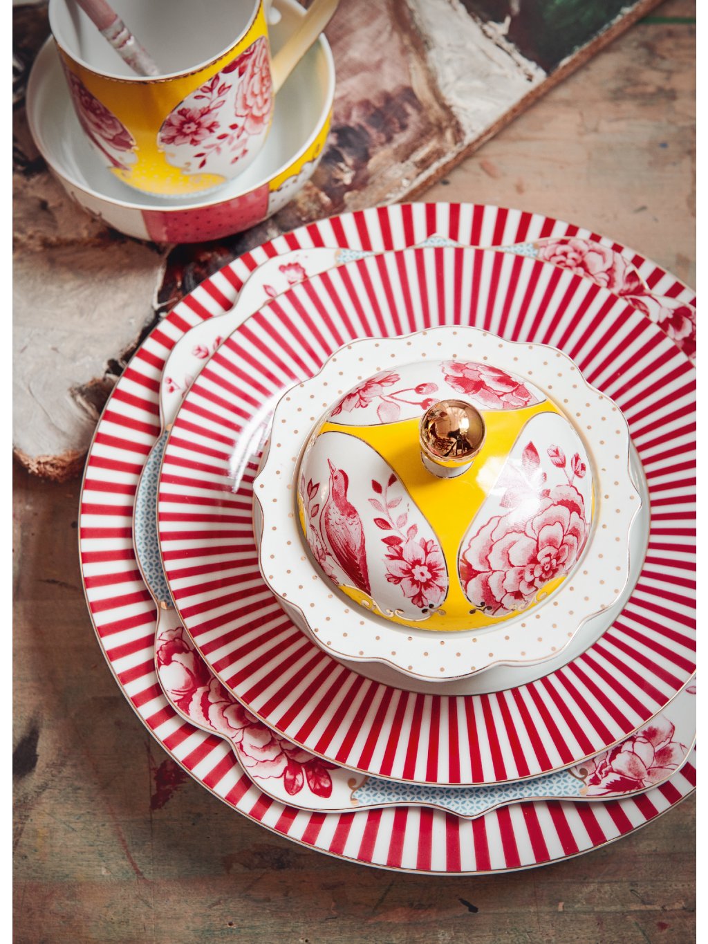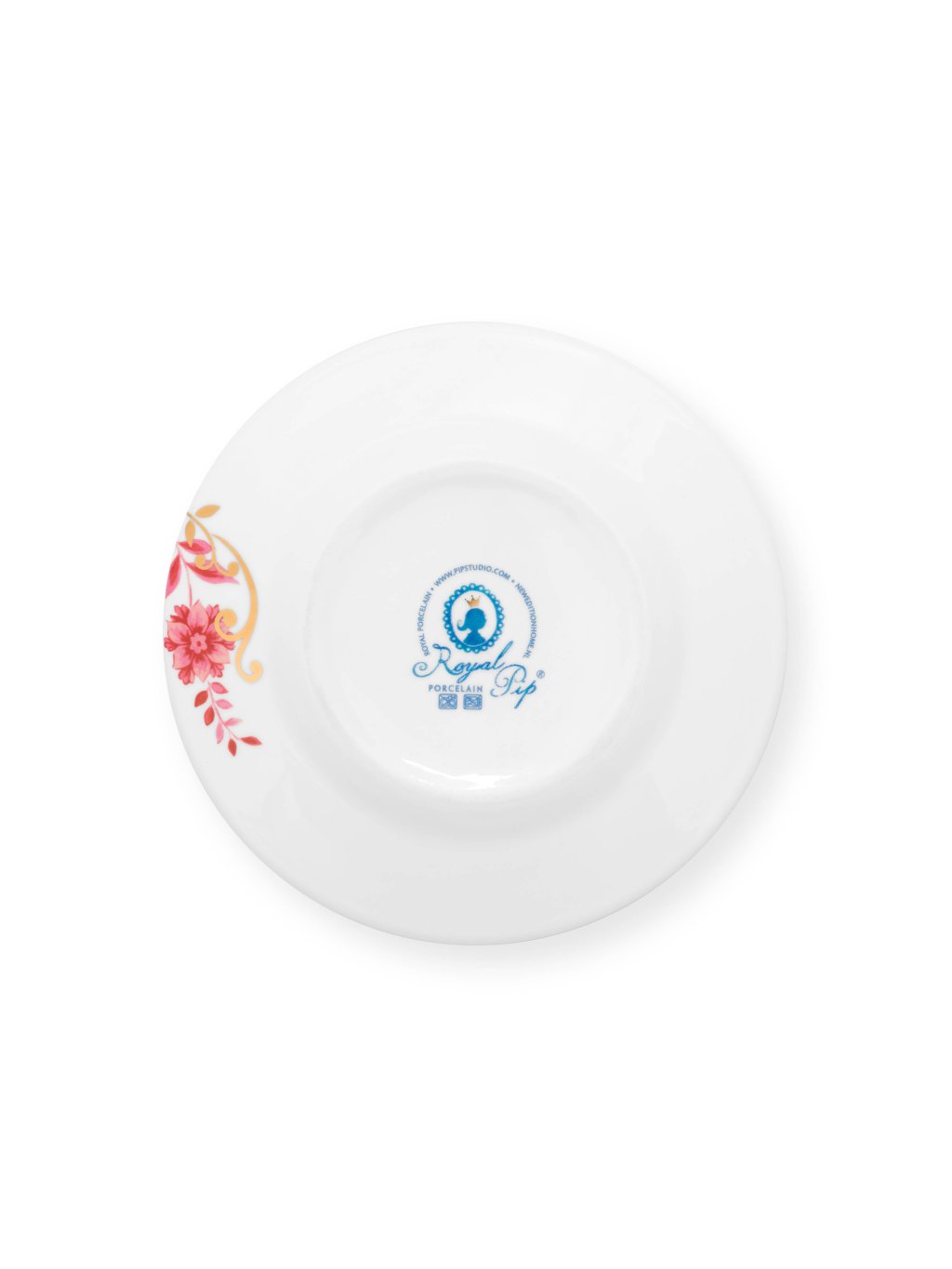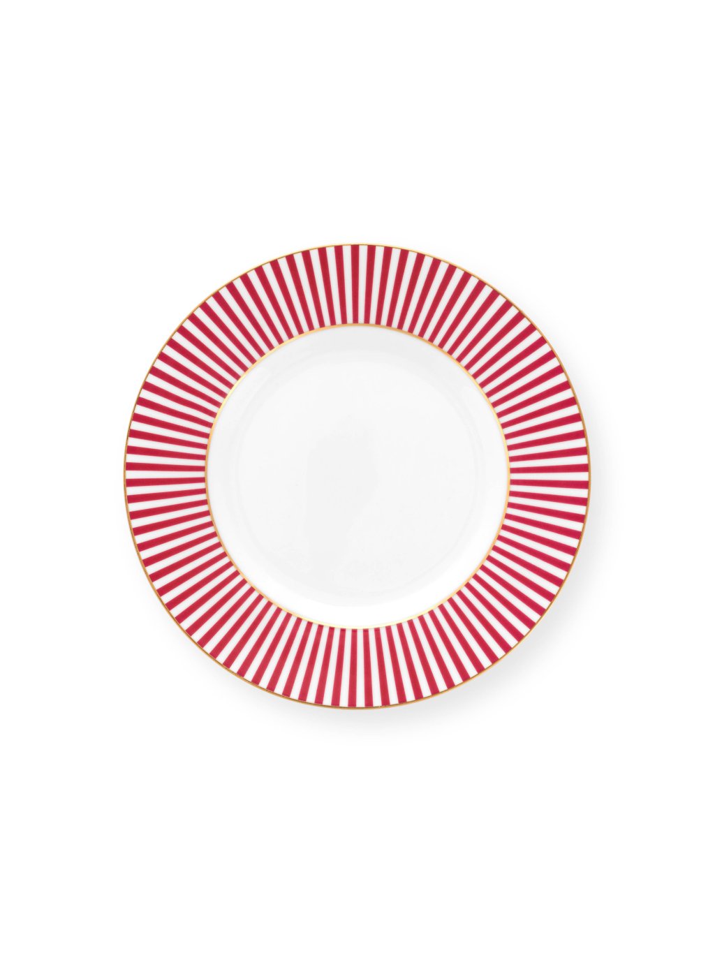Royal Stripes - dezertní talíř o průměru 12cm, zdobený jemným bílo-malinovým proužkem, bílým středem a zlatými detaily, zespoda jemná kytička. K dispozici také v jiných velikostech. Prozkoumejte celou kolekci Royal Stripes a sestavte si tu nejlepší kombinaci.