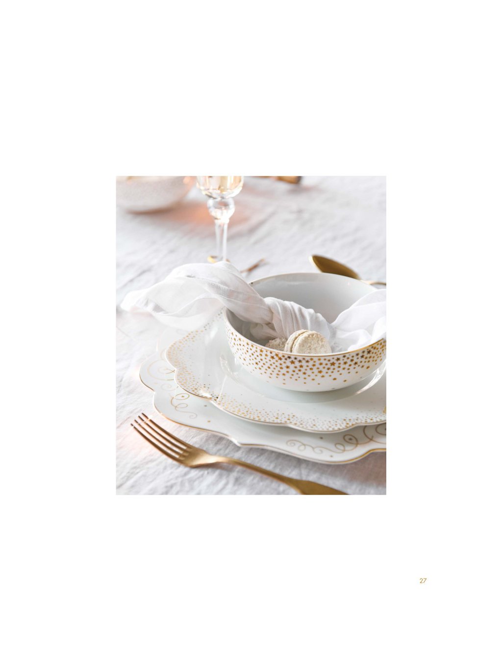 Propracovaný dekor s jemnými zlatými detaily. Materiál: 100% tenkostěnný porcelán, Doporučujeme ruční mytí. Nevhodné do mikrovlnné trouby.