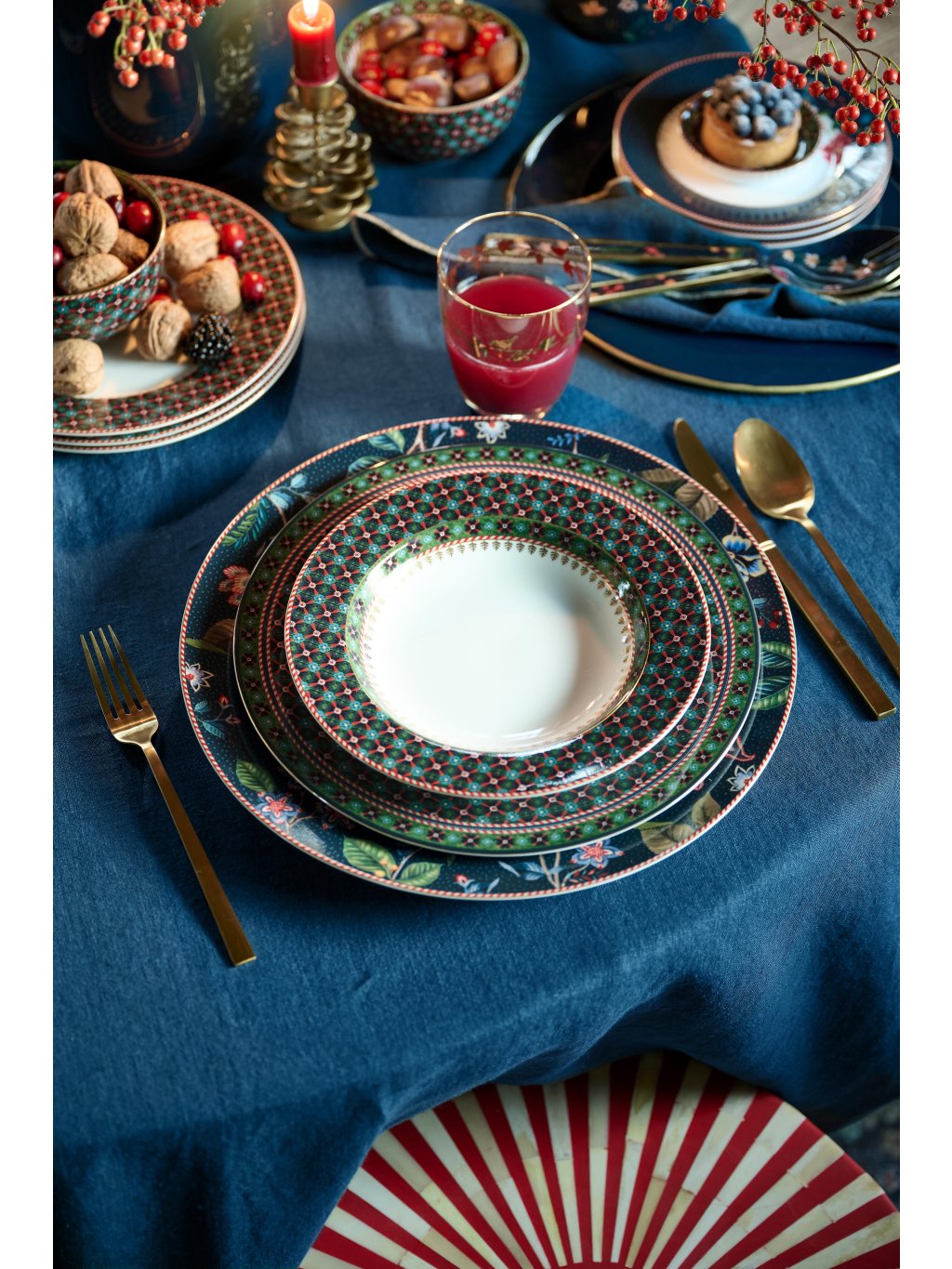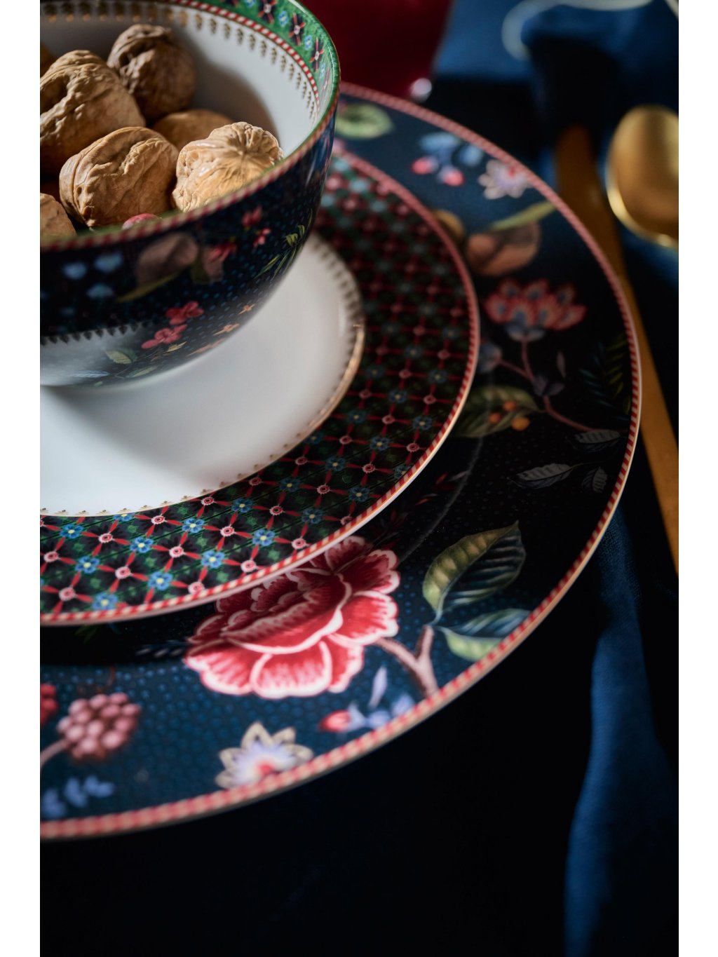 Mělký talíř o průměru 32cm vhodný na servírování drobného občerstvení nebo cukroví, zdobený nádherným vzorem barevných květin a lesních plodů. Berry Blues vás uchvátí! Projděte si celou kolekci, která vybízí k vytváření osobitých kombinací harmonických vzorů. Lze ho skvěle kombinovat s oblíbenou kolekcí Flower Festival. Talíře jsou v nabídce také v jiných dekorech a barvách.