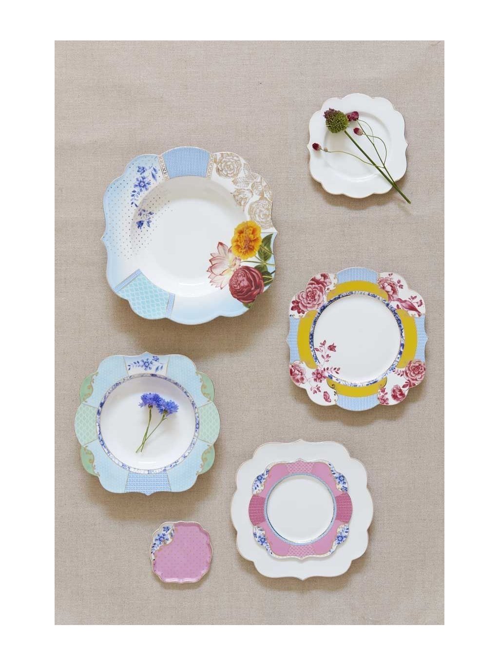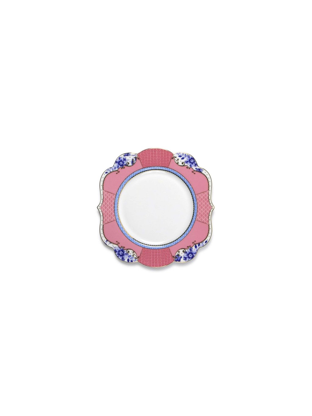 Talířek čtvercového tvaru šířka 17 cm, vhodný na dorty a zákusky. Dekor zobrazuje modré květiny na růžovém a bílém podkladu zdobené zlatými tečkami. K dispozici také v jiných dekorech a velikostech. Prozkoumejte celou kolekci Royal a sestavte si tu nejlepší kombinaci.
