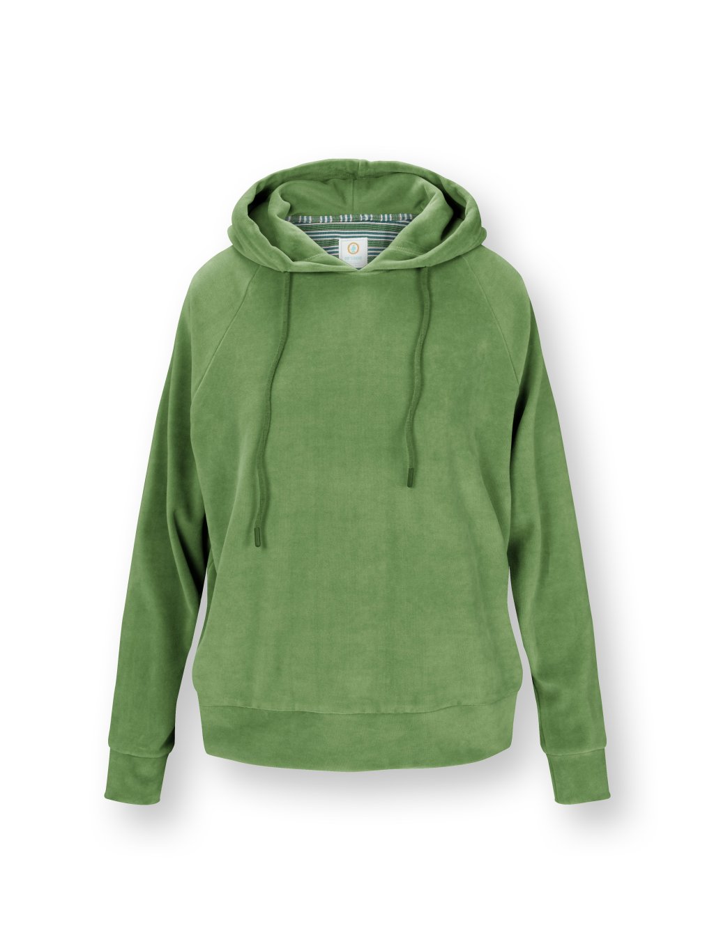 Měkká sametová mikina s dlouhým rukávem a volnějším střihem. Hebký materiál se sametovým leskem dodá vašemu outfitu nádech luxusu.