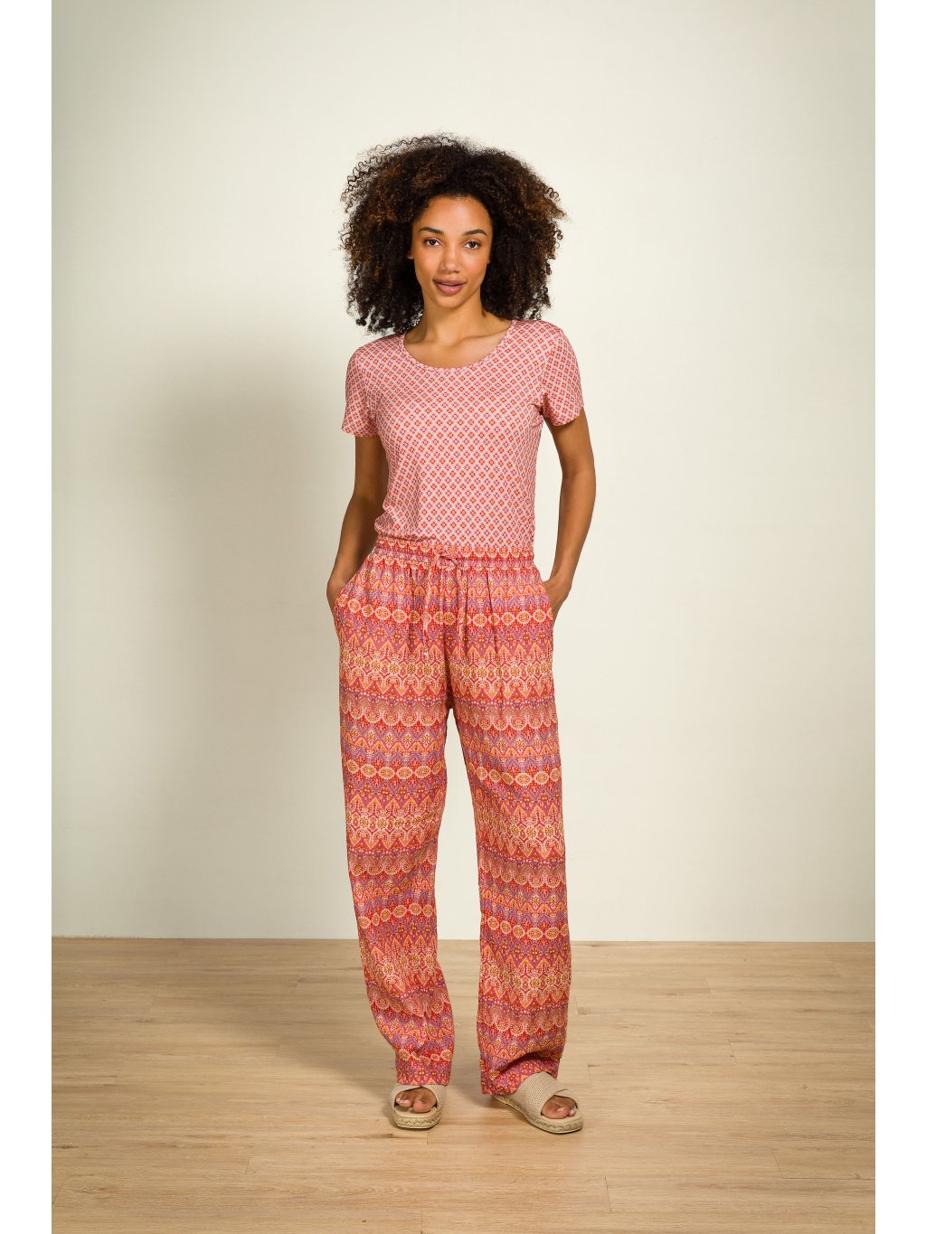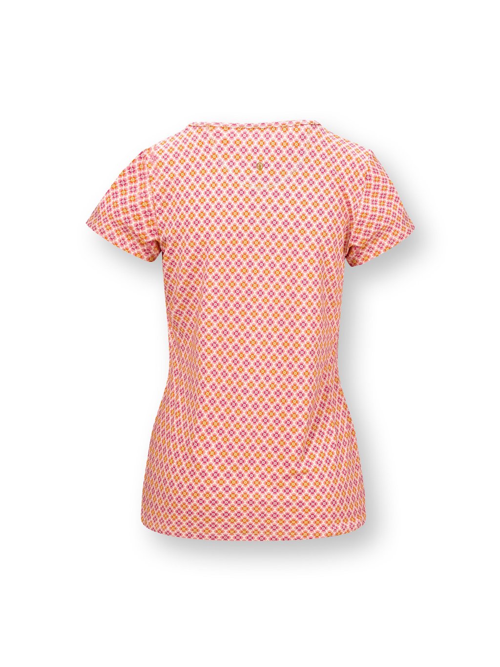 Toto tričko z kolekce Mojo je ideální základní kousek pro vrstvení. Má kulatý výstřih a krátké rukávy, což ho činí perfektním pro vytváření různých ležérních stylů. Design Mojo je jemný a živý geometrický vzor složený z drobných kvítků ve dvou barvách. Tvoří vhodný kontrast k dominantním florálním motivům.