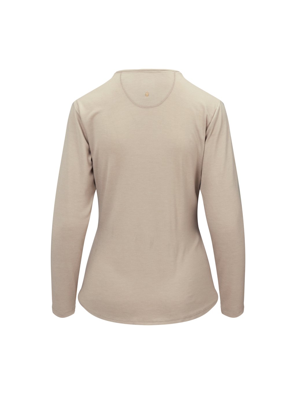 Top s dlouhým rukávem. Výstřih není hluboký. Písková melanž barva se krásně kombinuje s aktuální kolekcí. Látka je hebounká a díky elastanu látka jemně pruží. Nabízíme v různých velikostech a barvách. Vytvořte si jedinečnou kombinaci s kimonem a dlouhými kalhotami z aktuální kolekce.