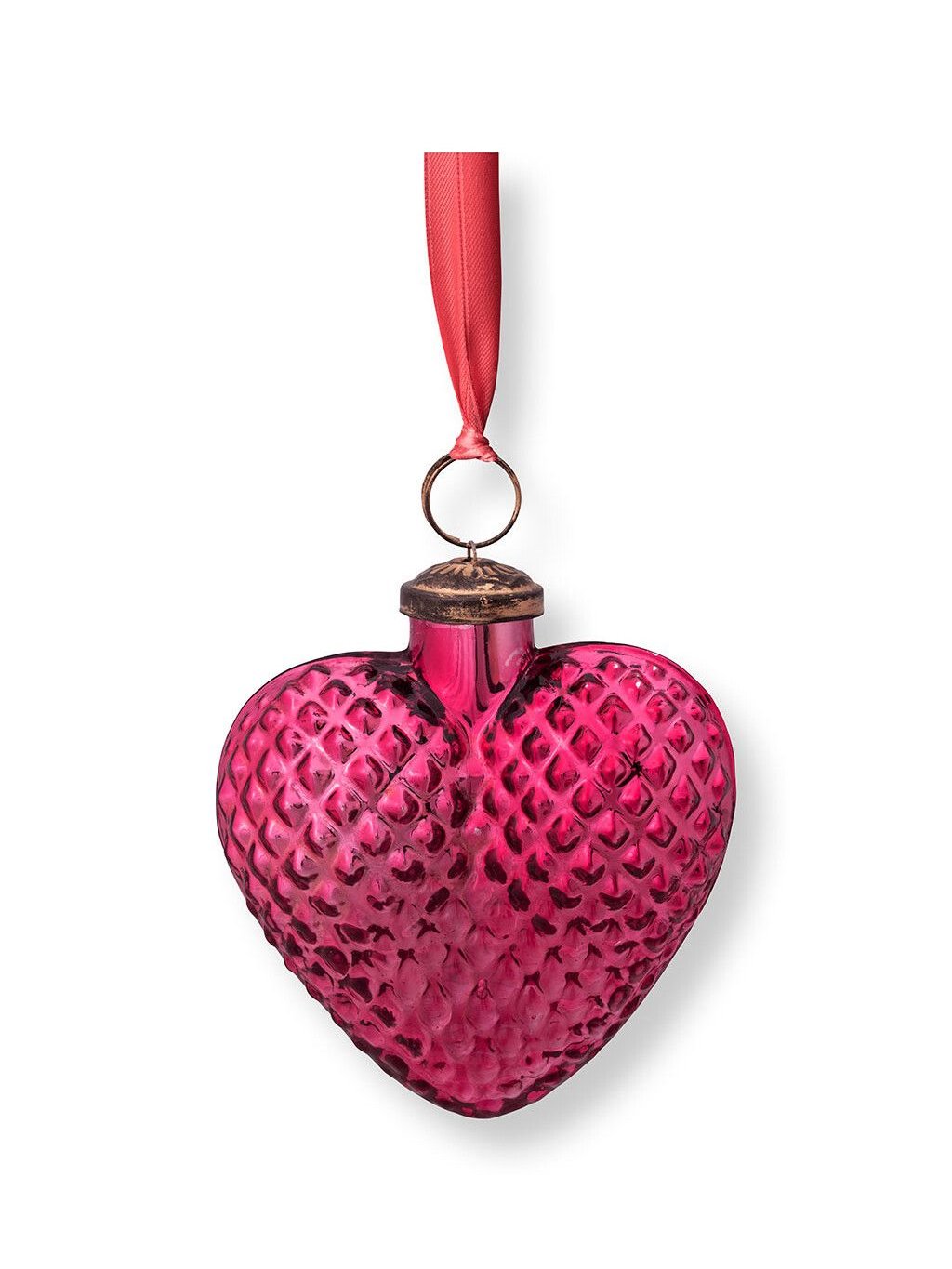 Vánoční ozdoba z foukaného skla ve tvaru srdce velikosti 10cm.