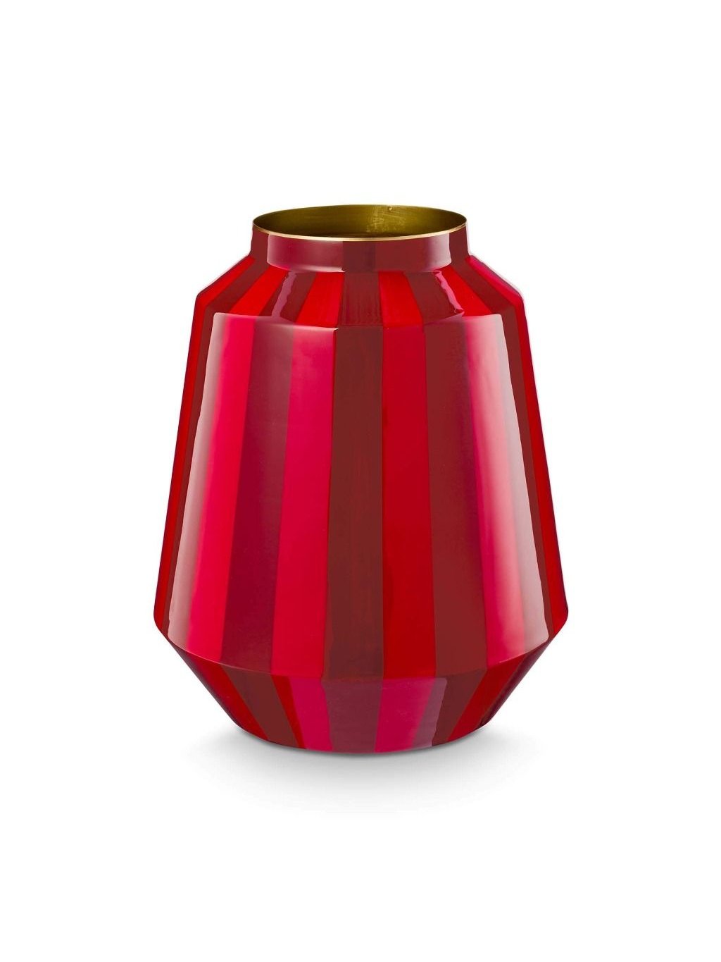 Stylová kovová váza v tmavě vínové barvě se svislými pruhy tón v tónu. Elegantní, výrazná a vhodná na kytice i jako dekorace.. K dispozici také v různých odstínech a velikostech.