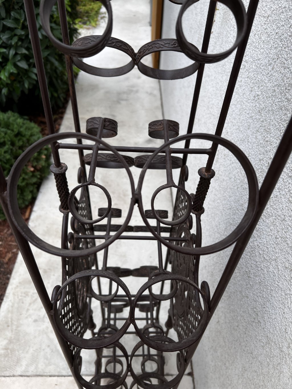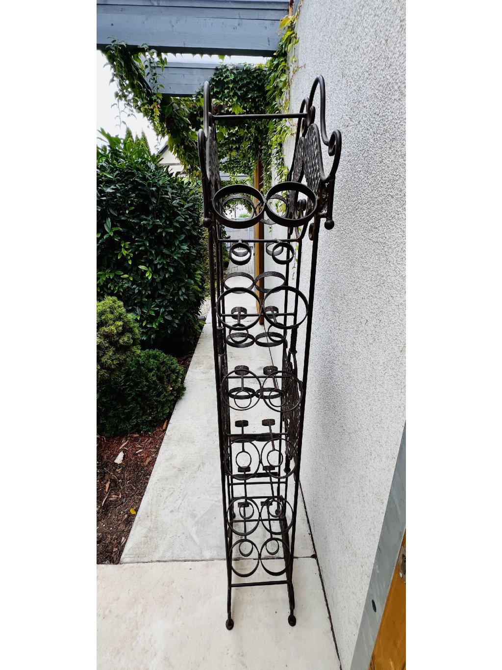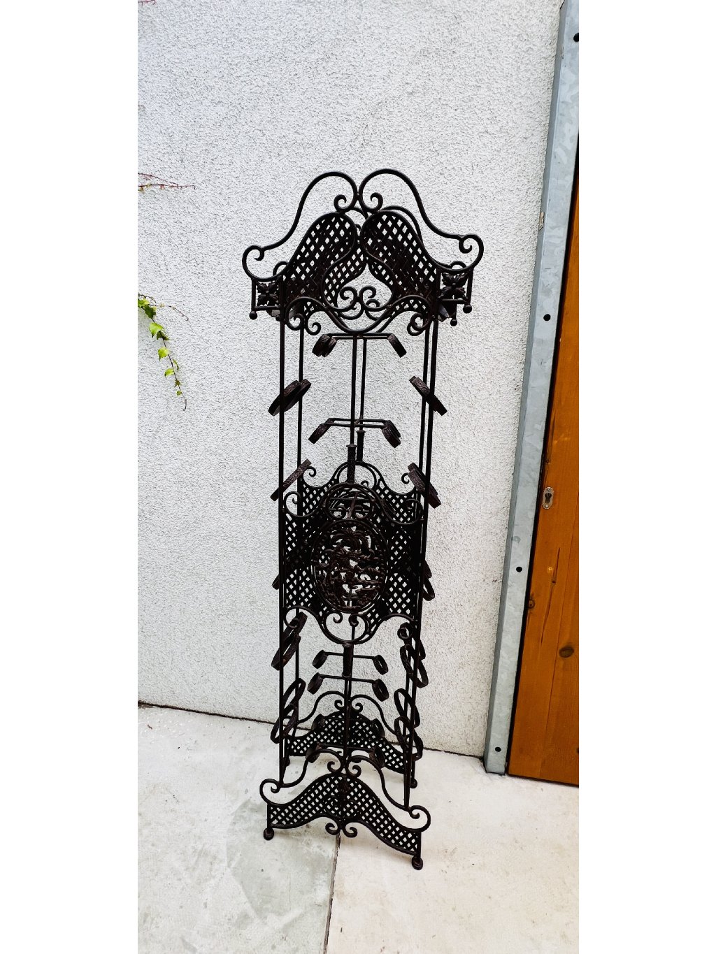 Jedinečný ručně dělaný kovový stojan na víno, který může stát samostatně a pojme až 24 lahví vína. Stojan je pevný, robustní a váží cca 25 kg, je zdobený neuvěřitelnými propracovanými detaily s motivy palem. Originální a strojem nenapodobitelná ruční práce.